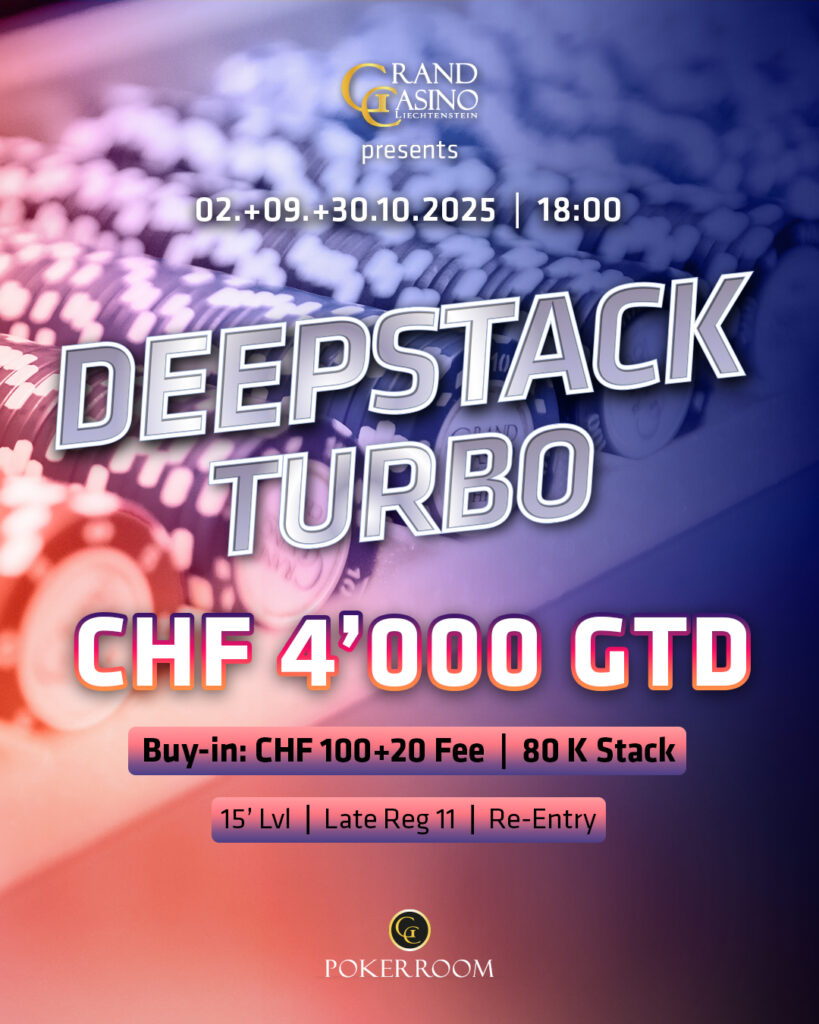 Gestern, den 30. Oktober, lud das Grand Casino Liechtenstein (GCLI) zum gewohnten CHF 100 + 20 Deepstack Turbo (CHF 4.000 GTD), ein Deal brachte Leroy den Sieg für CH 1.040.