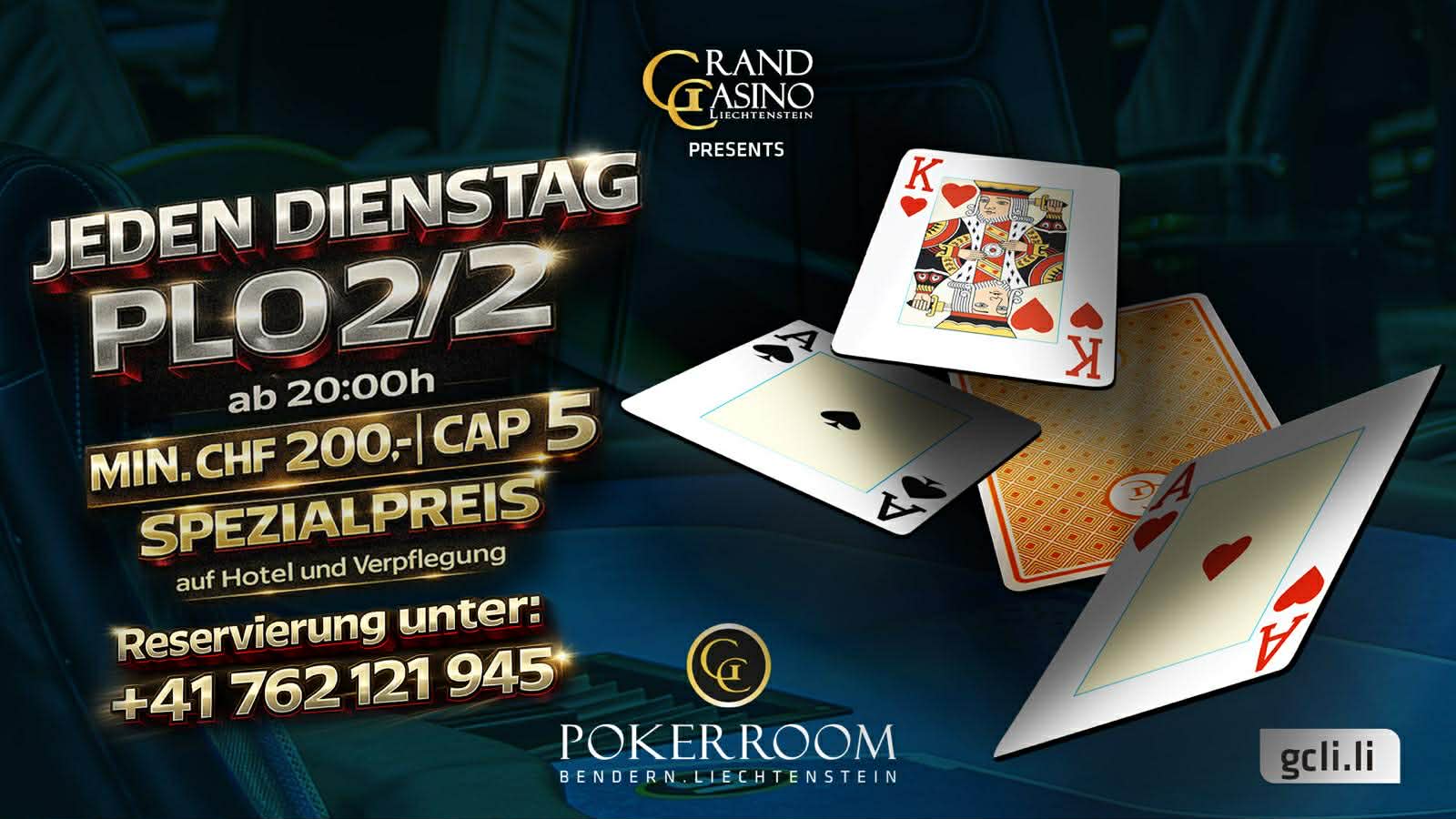 Ab sofort dreht sich eigentlich alles nur noch um den WSOP Circuit und die Qualifikation. Heute wird mit dem gewohnten CHF 50 + 50 + 10 Bounty Tournament (CHF 3.000 GTD/30k/20′) die Woche eröffnet. Bei den Cash Games wird ab CHF 1/3 NLH bzw. CHF 2/2 PLO mit einem Rake CAP von CHF 5 und Bad Beat Jackpot gespielt. Alles zum Pokerangebot des Grand Casino Liechtenstein gibt es auf der Webseite gcli.li, auf der Poker Facebook Seite des GCLI bliebt Ihr immer auf dem Laufenden.