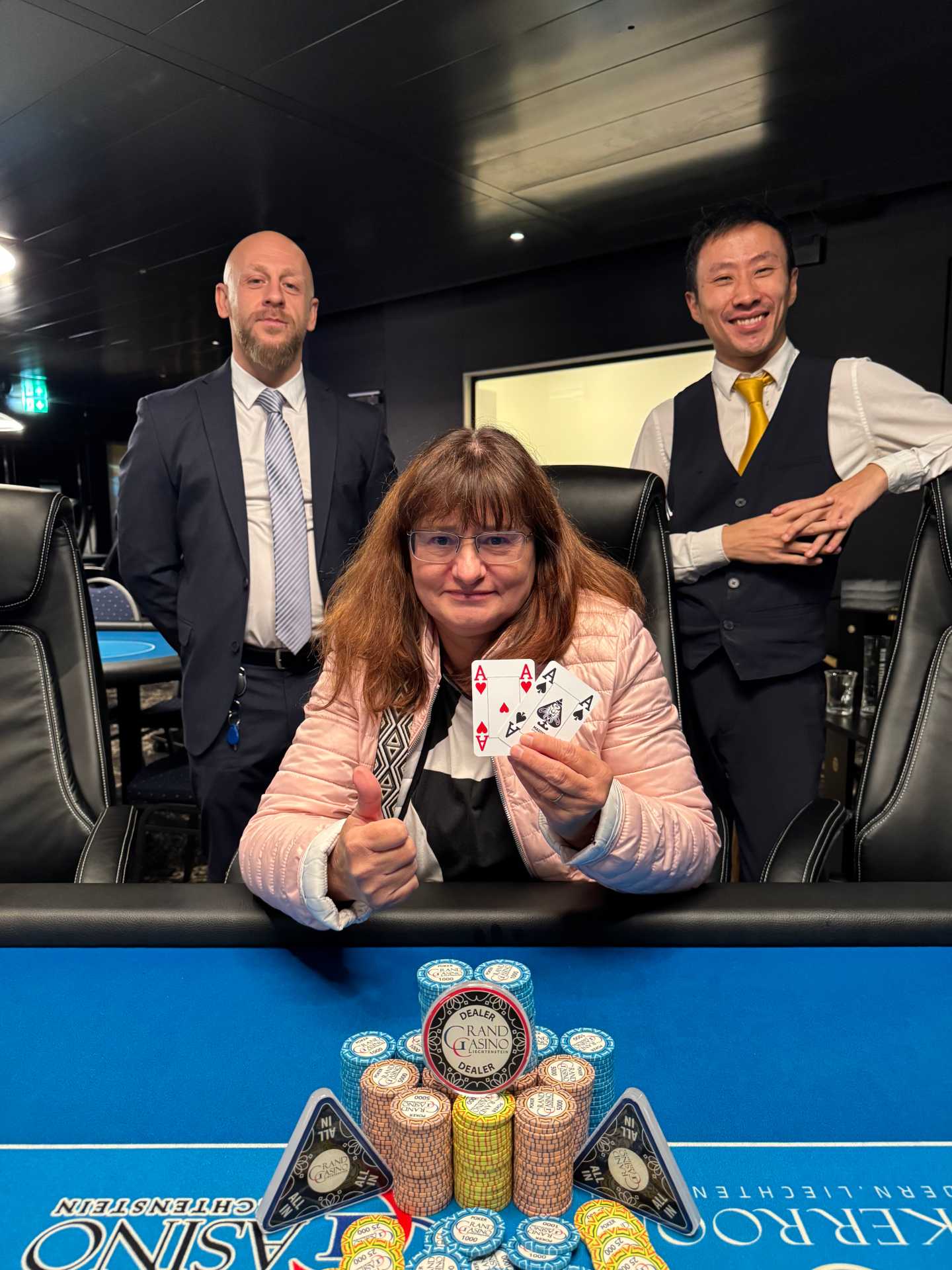 Mit dem CHF 90 + 10 Weekstarter (CHF 3.000 GTD) eröffnete das Grand Casino Liechtenstein (GCLI) gestern, den 3. November, die neue Pokerwoche. Nach einem Deal sicherte sich Ines Thöni den Sieg.