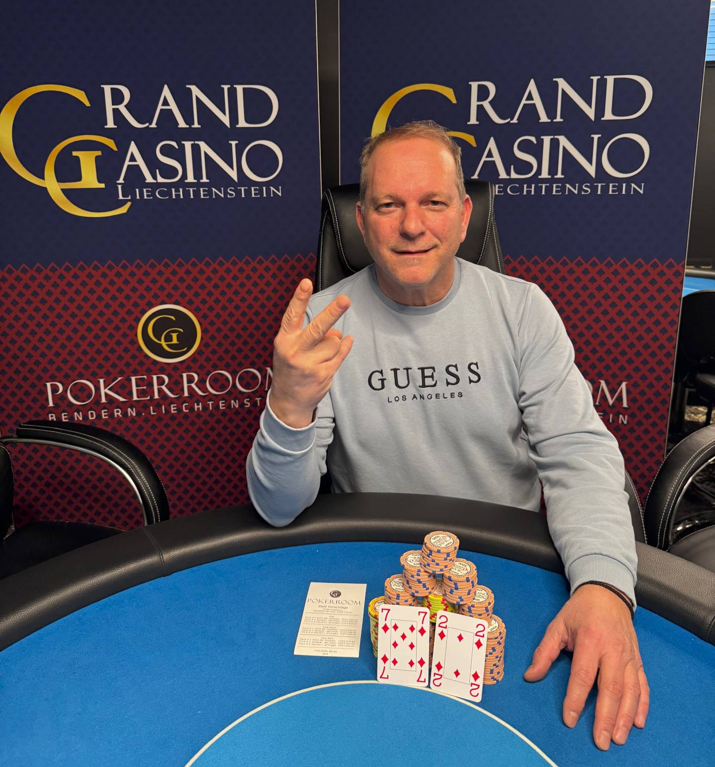 Volle Tische gab es gestern, den 16. Januar, im Grand Casino Liechtenstein (GCLI) beim CHF 105 + 15 Friday Freezeout (CHF 7.000 GTD), Notis GR holte nach einem Deal zu dritt den Sieg.