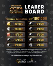 Drei Events und rund CHF 2.000.000 GTD – das ist dei Grand Casino Poker Series (GCPS) vom Grand Casino Liechtenstein (GCLI), die von 8. bis 15. September mit dem CHF 300 + 30 GCPS Master (CHF 300.000 GTD) eröffnet wird. Nun gibt es auch die Details zum angekündigten Leaderboard.