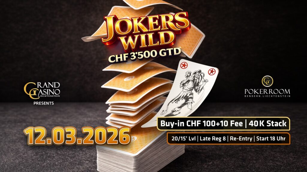 Auch heute gibt es wieder viele Chips, wenn um 15 Uhr das CHF 110 + 20 Sunday Megastack (CHF 5.000 GTD/60k/20′) beginnt. Bei den Cash Games wird ab CHF 1/3 NLH bzw. CHF 2/2 PLO mit einem Rake CAP von CHF 5 und Bad Beat Jackpot gespielt. Alles zum Pokerangebot des Grand Casino Liechtenstein gibt es auf der Webseite gcli.li, auf der Poker Facebook Seite des GCLI bliebt Ihr immer auf dem Laufenden.