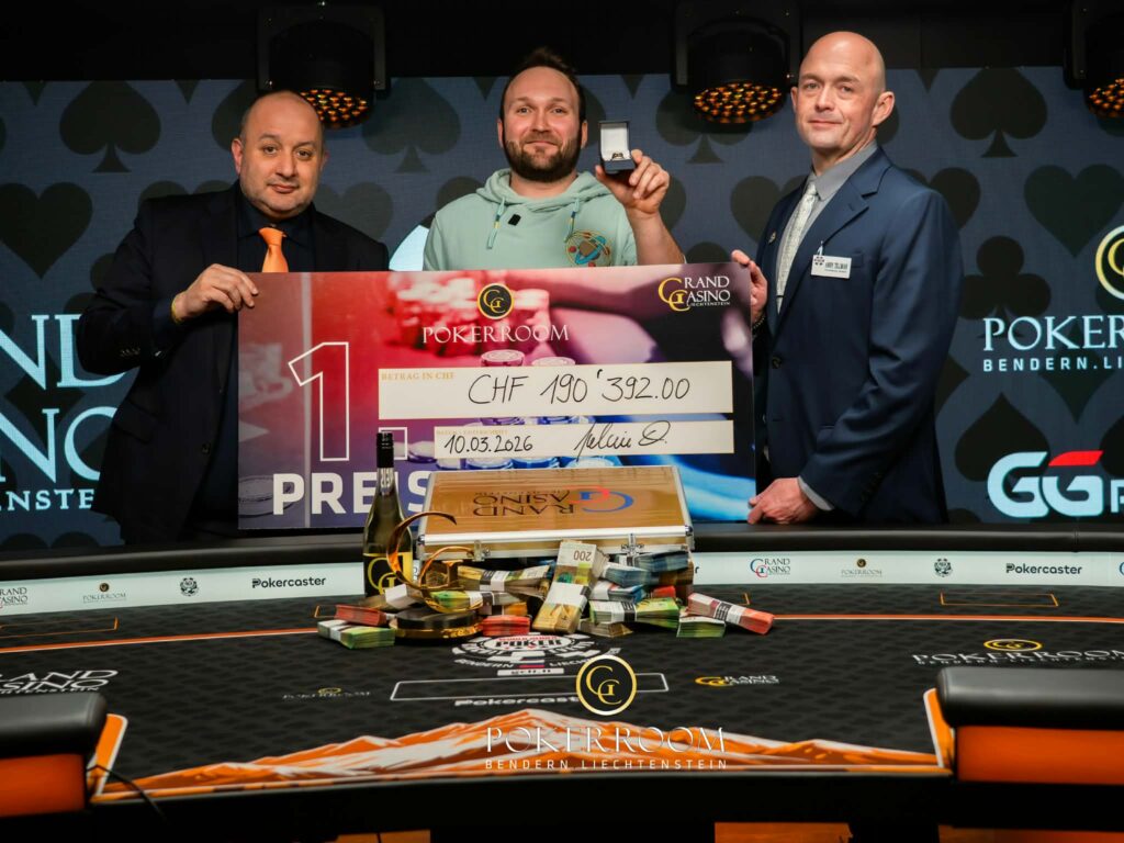 Der Goldring, CHF 18.317 und das $5k WSOPP Package beim CHF 270 + 30 Bigstack beim World Series of Poker Circuit (WSOPC) im Grand Casino Liechtenstein (GCLI) gingen gestern an den Italiener Oscar Bonifacio.