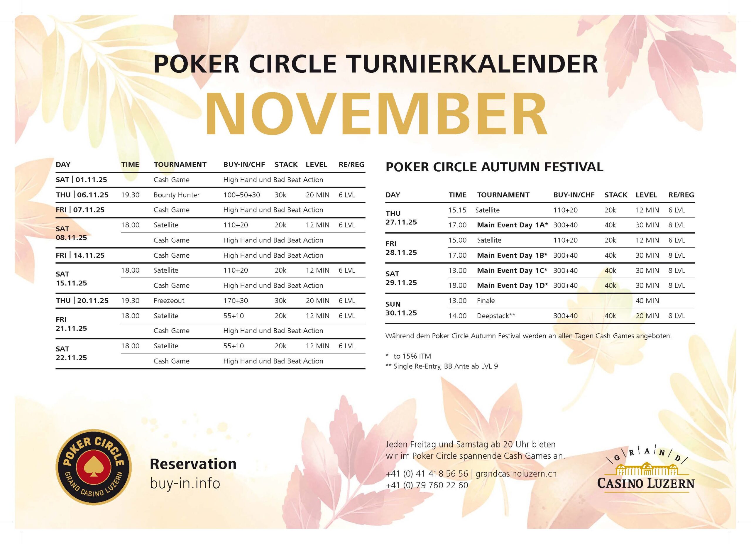 Grand Casino Luzern: CHF 25.472 warten auf den Poker Circle Autumn Festival Sieger