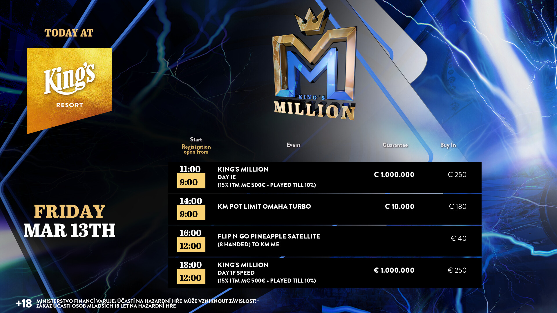 King’s: Der Schedule zum € 10.000.000 GTD King’s Million European Poker Championship Festival