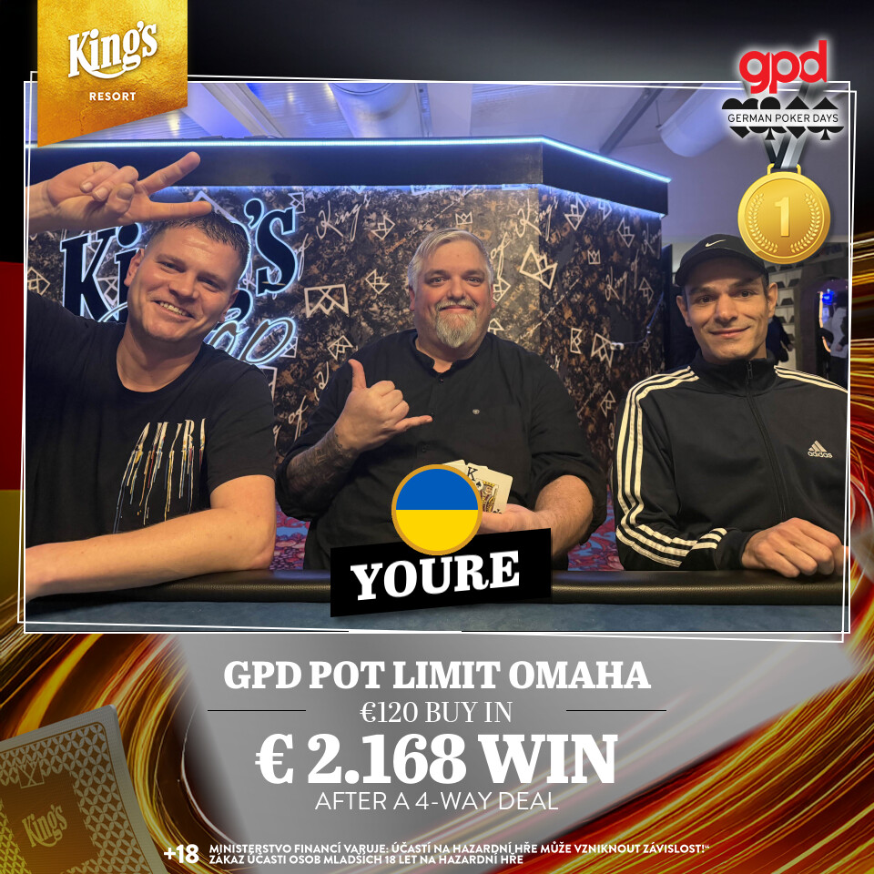 Heute startet um 11 Uhr der letzte Turbo Flight beim € 199 Main Event ( € 300.000 GTD inkl. 10 x € 3k King’s Million EPC Packages), ab 14 Uhr kann noch geflippt werden, ehe es dann ins Finale geht. Um 18 Uhr warten beim € 350 GPD High Roller € 30.000 (100k/25′). Die Cash Games starten wie gewohnt ab den Blinds € 1/2 NLH bzw. € 2/2 PLO wird gespielt. Alle Infos zum kompletten Angebot findet Ihr unter kings-resort.com.