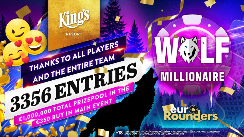 3.356 Entries sind es beim € 350 Wolf Millionaire im King’s Resort Rozvadov geworden, noch sind es 67 Spieler, die heute angeführt von Jozef Mozsi in Tag 3 starten.