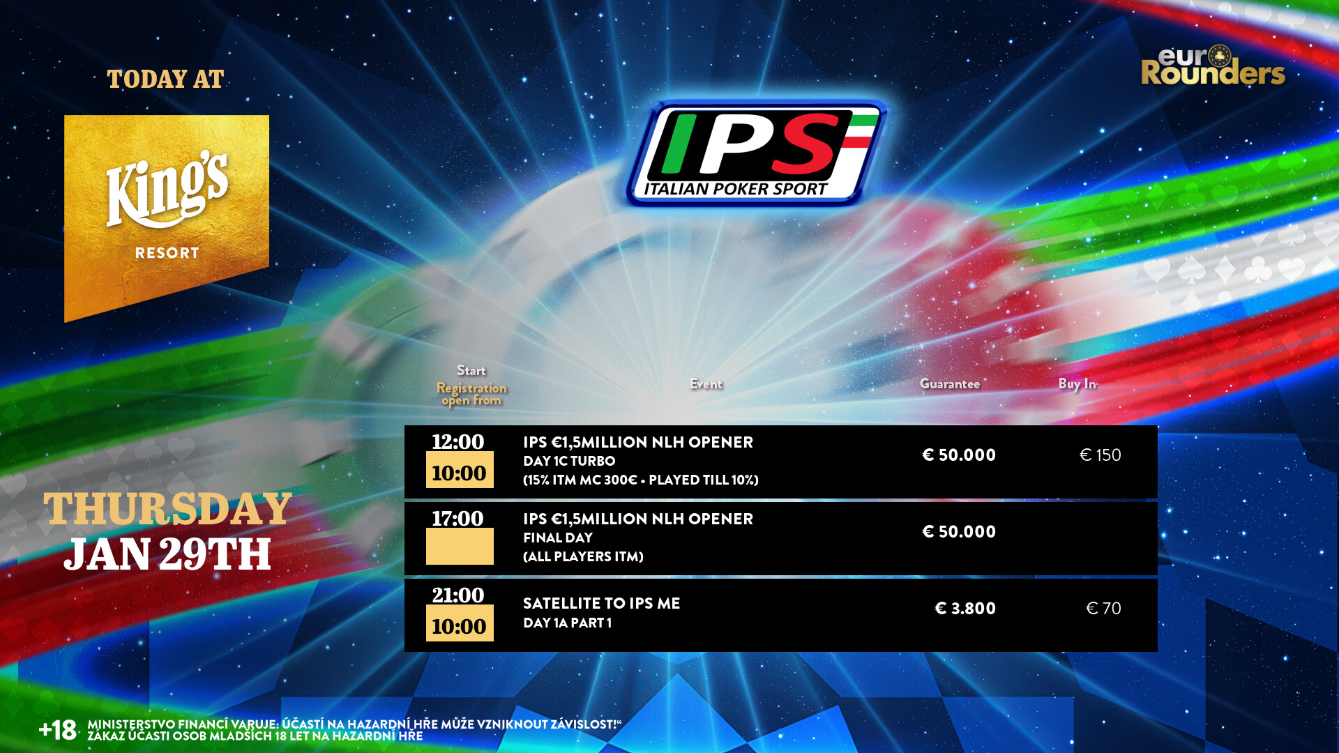 Heute gibt es noch den Turbo Flight beim € 150 IPS Opener (€ 50.000 GTD) im King’s Resort Rozvadov, ehe es dann anschließend gleich ins Finale geht.