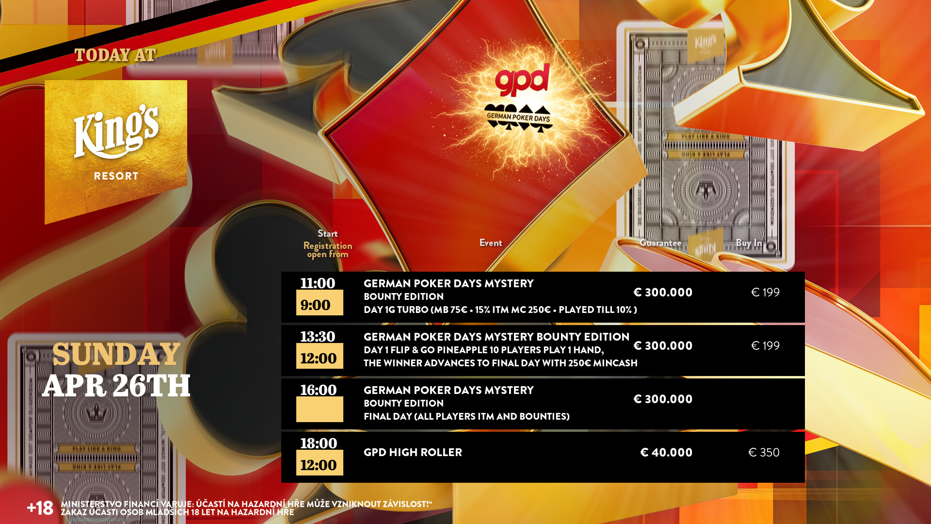 Preispool: € 300.000 GTD (inkl. 10 x € 3k King’s Million EPC Packages)