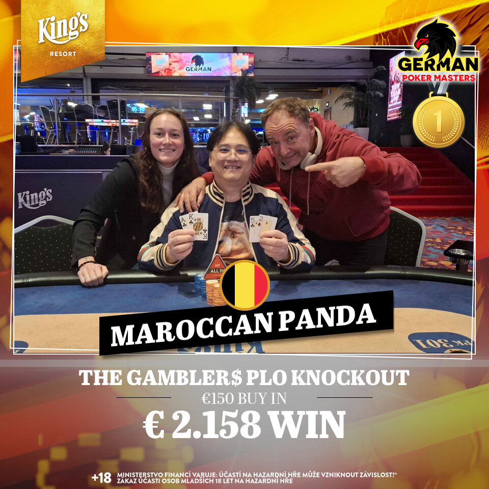 Das € 100 + 50 The Gambler$ PLO Knockout (€ 10.000 GTD) eröffnete gestern, den 25. November, im King’s Resort Rozvadov den Spieltag. Maroccan Panda holte den Sieg.