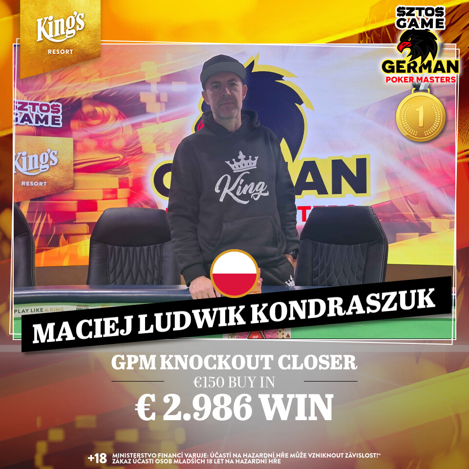 Mayoman is back! Beim € 600 GPM High Roller Event der German Poker Masters Million im King’s Resort Rozvadov holte sich Michael Strauch gestern, den 1. Dezember, den Sieg. Beim € 100 + 50 GPM Closer Knockout siegte der Pole Maciej Kondraszuk.