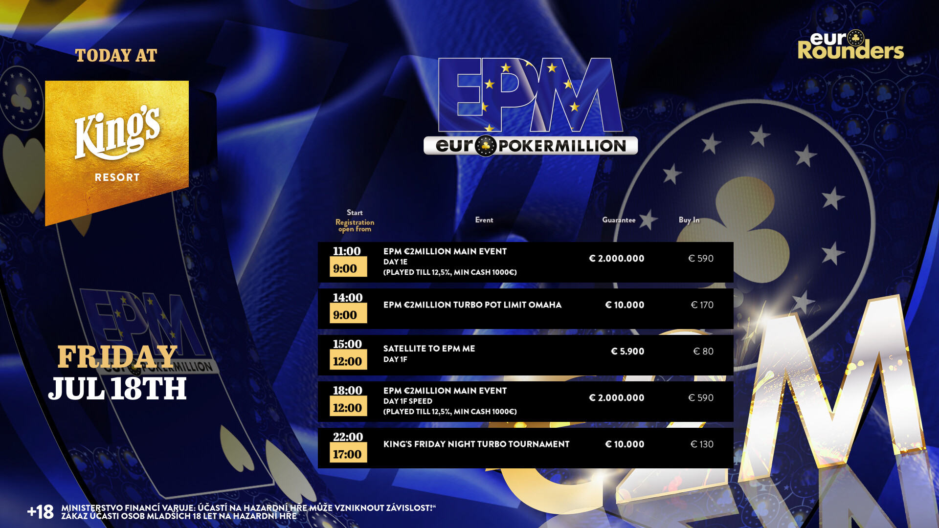 Auch gestern, den 17. Juli, wurde wieder beim € 590 Main Event (€ 2.000.000 GTD inkl. 14 x € 10.350 WSOPE Main Event Tickets) beim Euro Poker Million Festival powered by Eurorounders im King’s Resort Rozvadov gespielt, Megasiggi konnte sich den Tagessieg sichern.