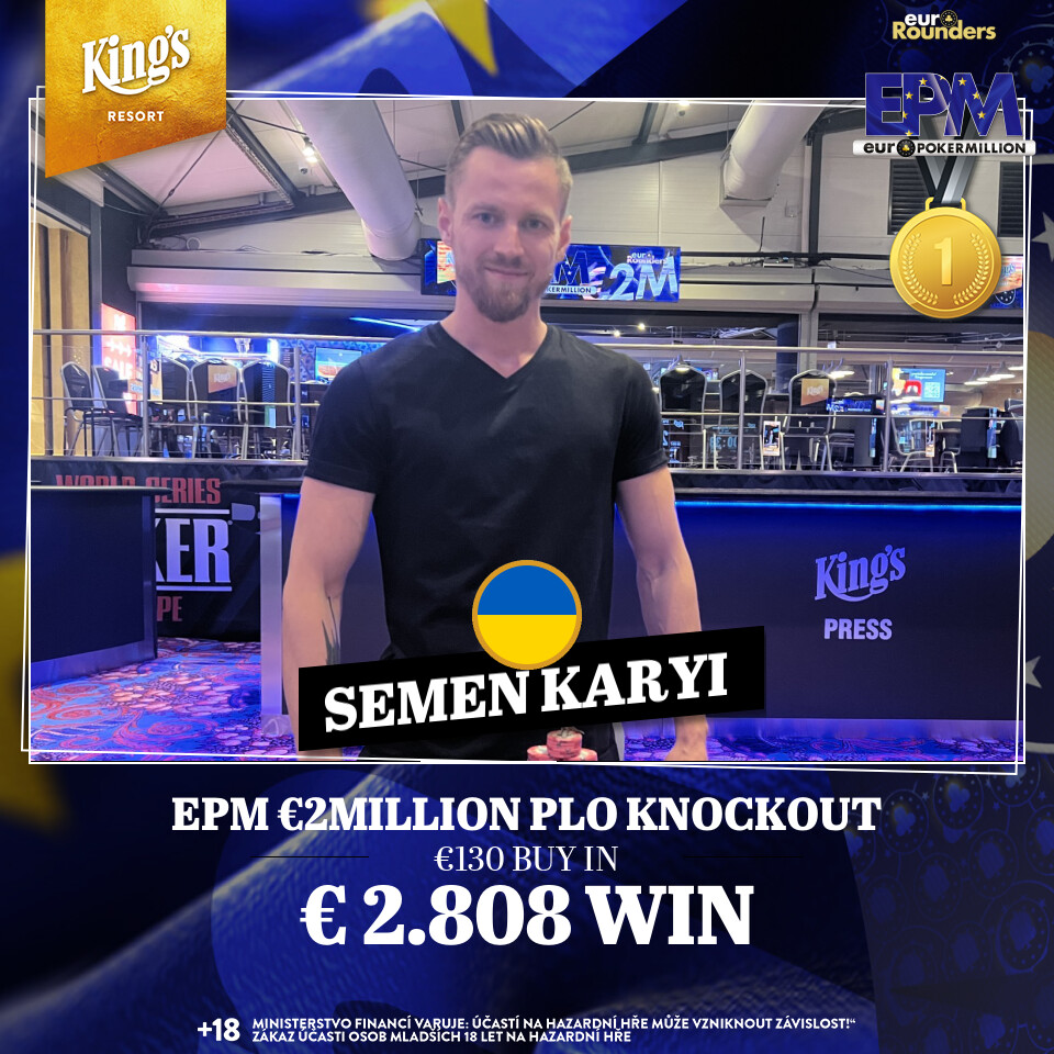 Mit dem € 105 + 25 PLO Bounty (€ 10.000) ging es gestern, den 15. Juli, beim Euro Poker Million Festival im King’s Resort Rozvadov in den Tag. Den Sieg holte Semen Karyi.