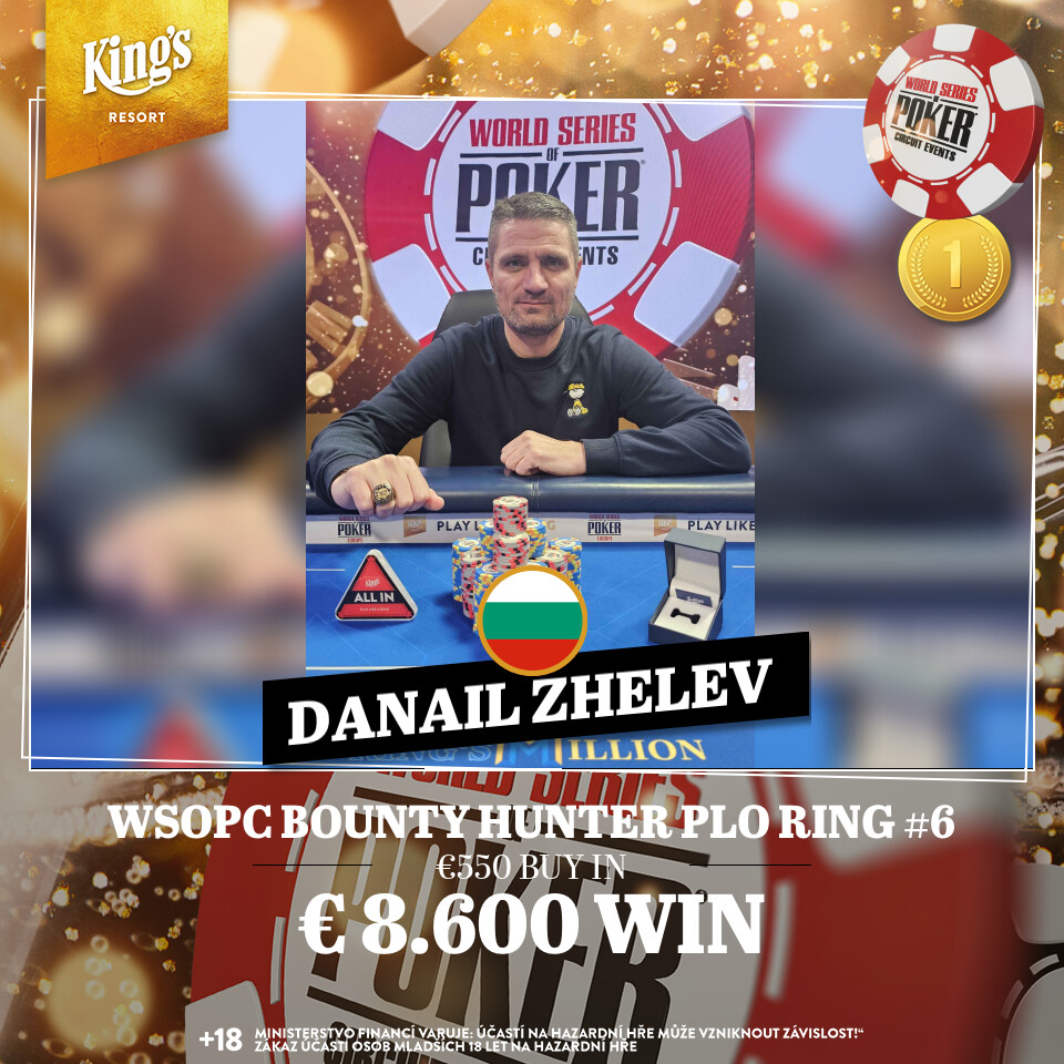 Erneut gab es PLO Action beim World Series of Poker Circuit (WSOPC) im King’s Resort Rozvadov. Beim € 400 + 150 Bounty Hunter PLO (€ 50.000 GTD) konnte sich Danail Zhelev den Sieg für € 8.600 + Bounties + $5k WSOP Paradise Package sichern.