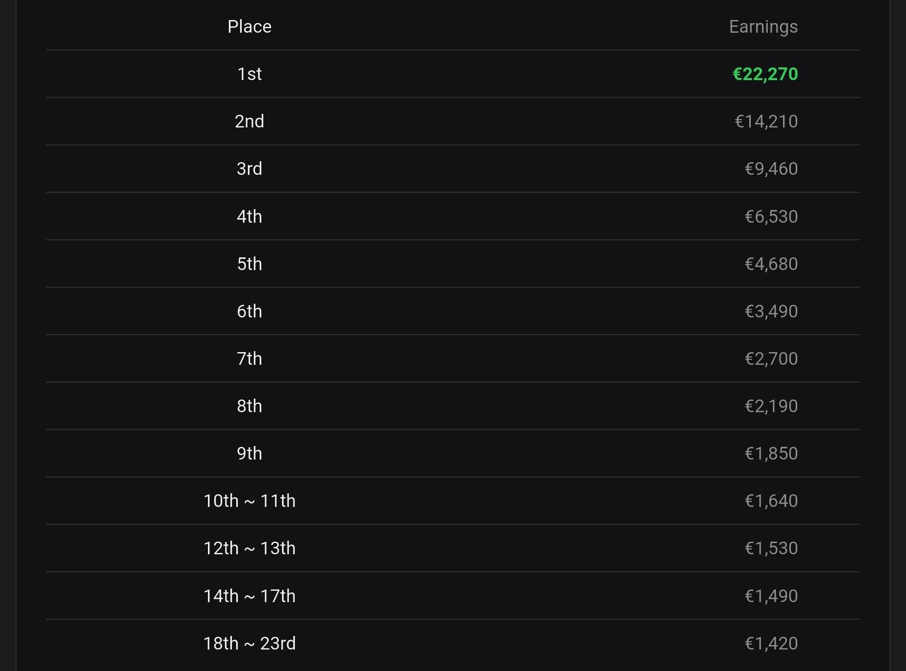 13 Levels gespielt und quasi auf der Bubble ging der Tag zu Ende. 25 Spieler konnten eintüten, die Führung hat der Tscheche Vojtech Budil mit 99 BBs, bester Deutscher ist Robert Ashelm auf Rang 3 mit 72 BBs. Zwei Spieler gehen heute noch leer aus, dann haben alle €  1.420 sicher. Der Sieger kassiert am Ende € 22.270 + Bounties + $5k WSOP Paradise Package.