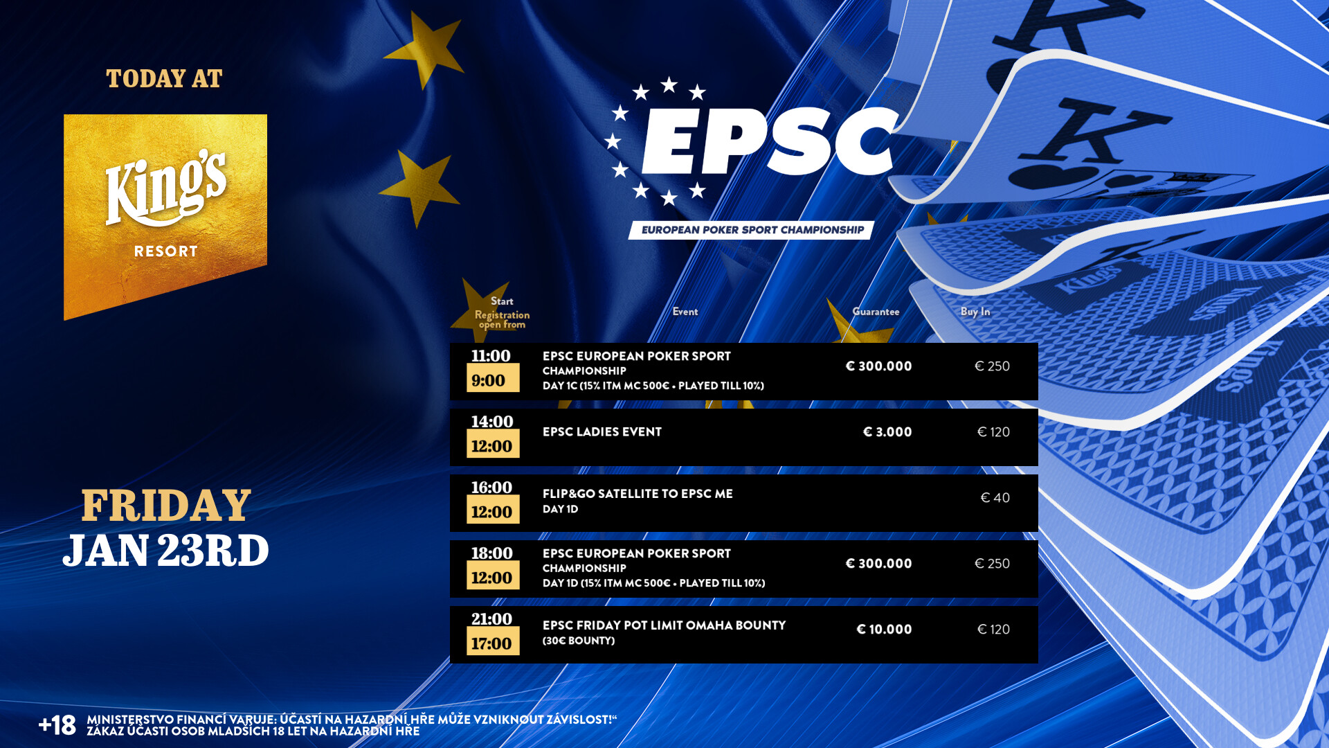 Der zweite Flight der € 250 European Poker Sport Championship EPSC (€ 300.000 GTD inkl. 10 x € 3k King’s Million EPC Packages) im King’s Resort Rozvadov brachte mit Yamil Angura einen klaren neuen Gesamtchipleader.