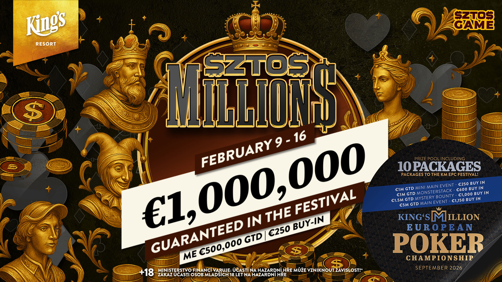 Das Grand Casino Aš hat in den kommenden Wochen wieder einige Festivals, dieses Wochenende aber locken das € 70 + 10 Super Seven (€ 7.777 GTD) und das € 70 + 10 Classic Deepstack (€ 10.000 GTD). Im King’s Resort Rozvadov sind $ZTO$ zu Gast, beim € 250 Min event warten hier wieder satte € 500.000 GTD (inkl. 10 x € 3k King’s Million EPC Packages), dazu kommen noch die Side Events.Im King’s Prague gibt es auch einen Heat, außerdem warten das € 100 + 50 Mystery Bounty (€ 10.000 GTD) und das € 100 Saturday Monster Stack (€ 8.000 GTD).