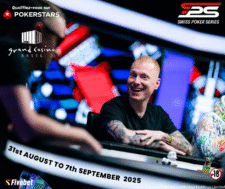 Noch kann man sich auf PokerStars für kleines Geld für die SPS Basel qualifizieren, auch die Schweizer haben die Option. Das CHF 440 + 60 Main Event hat insgesamt fünf Flights, wobei am 31. August eben mit 50.000 Chips und 40 Minuten Levels gestartet wird, dann geht es aber erst am 3. September mit Tag 1B zu denselben Konditionen weiter. Am 4. und 5. September folgen die anderen beiden regulären Flights, am 5. September gibt es dann noch einen Turbo Flihgt (20′). Für alle verbliebenen Spieler geht es dann mit 50 Minuten Levels in Tag 2, das Finale am 7. September wird mit 60 Minuten Levels gespielt.