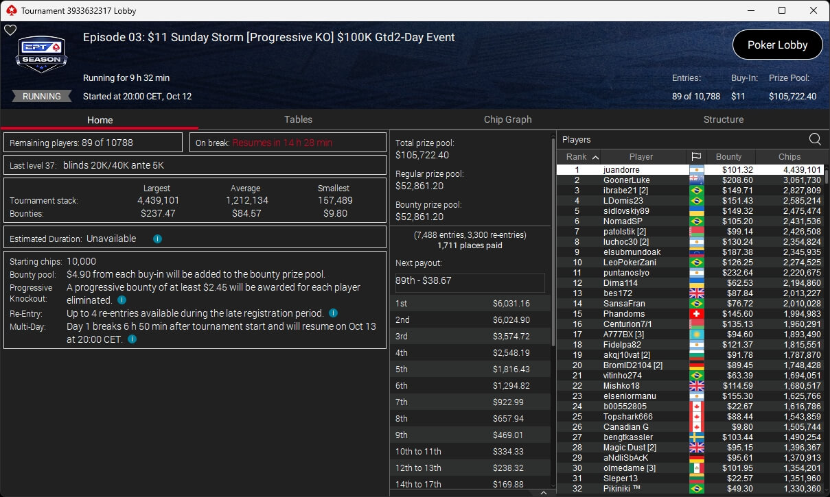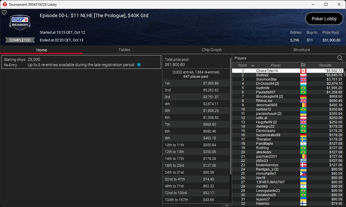 Gestern fiel auf PokerStars der Startschuss zur EPT Season. Budoa2 (2./$6.045,70; $11 Prologue) und weh_chris (3./$5.570,60 + $913,61; $33 Season Opener) schrammten knapp an einem Titel zum Auftakt vorbei.