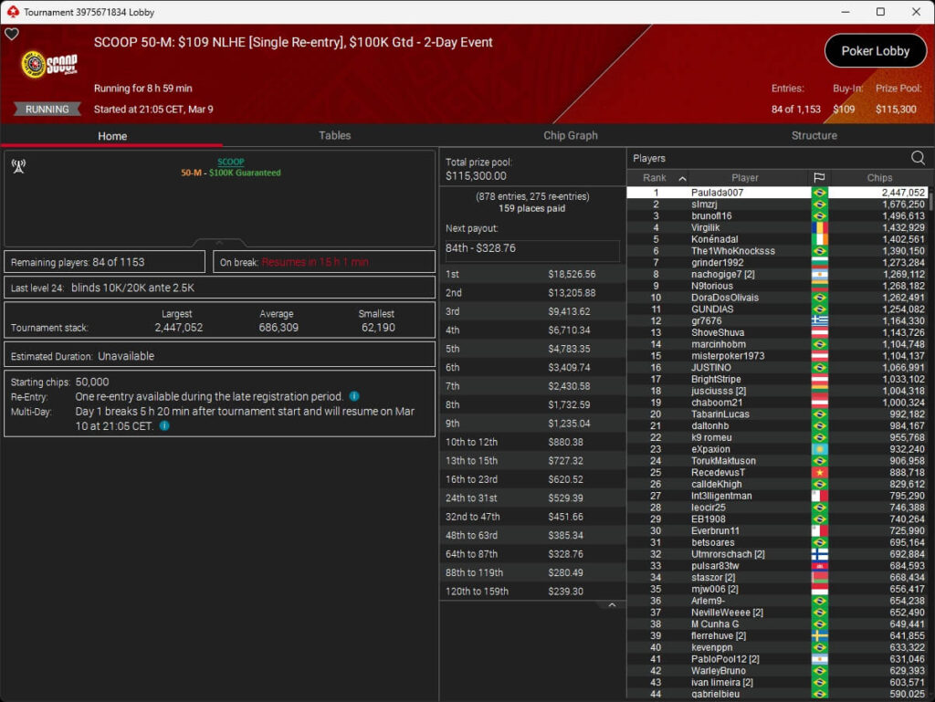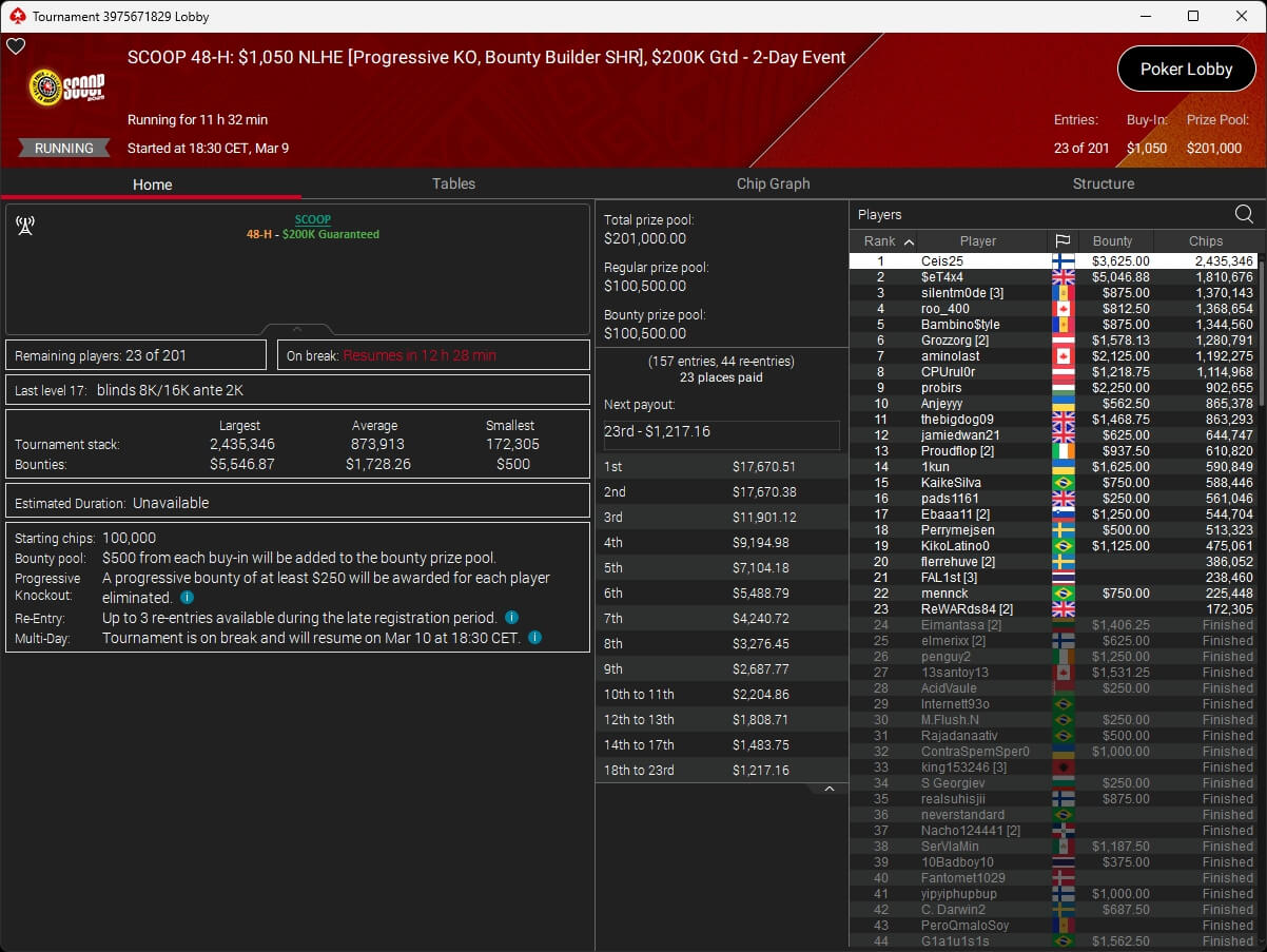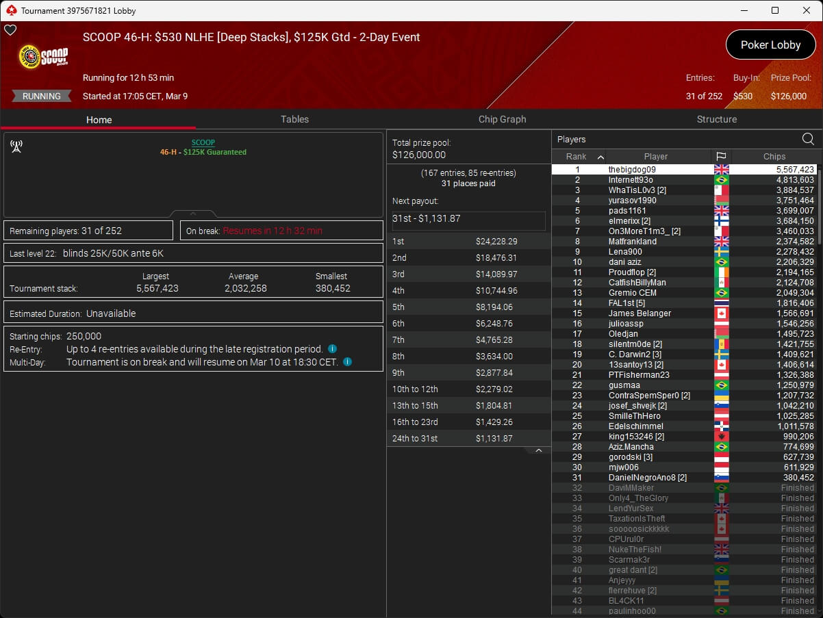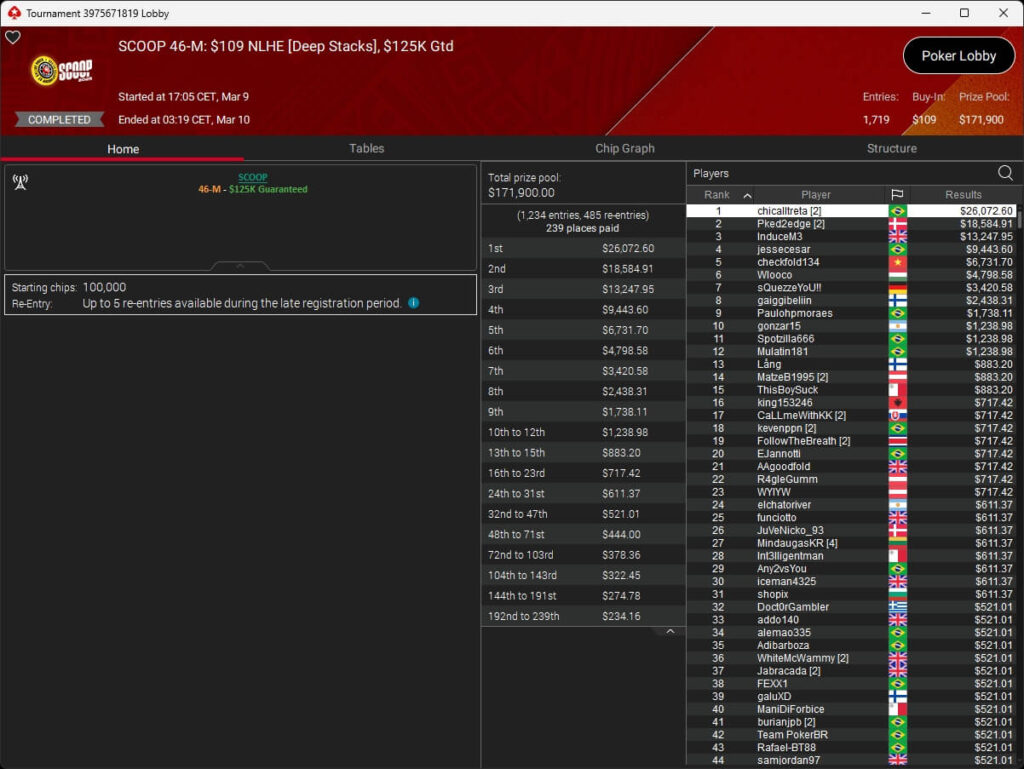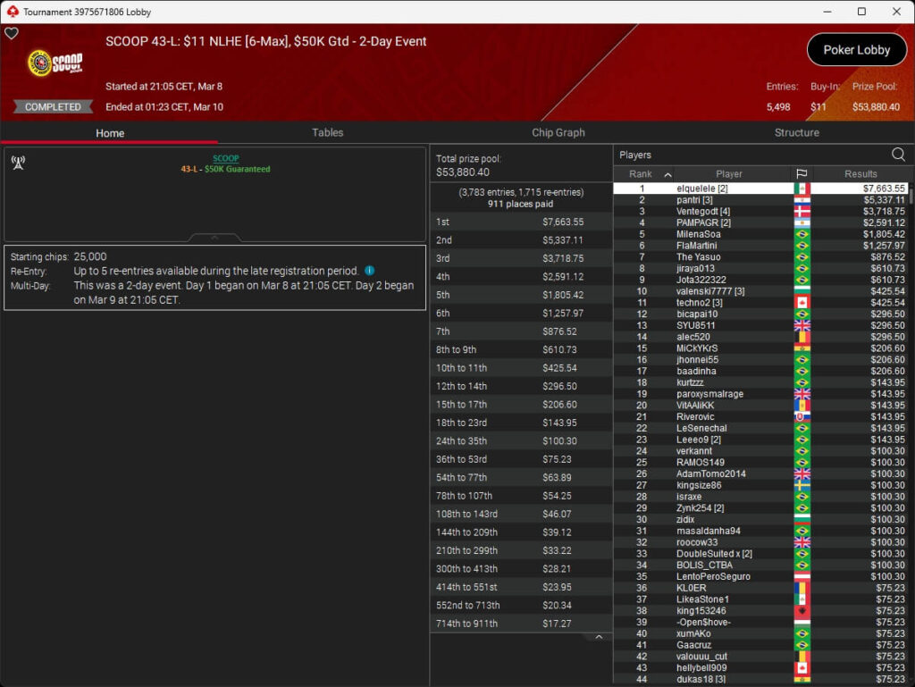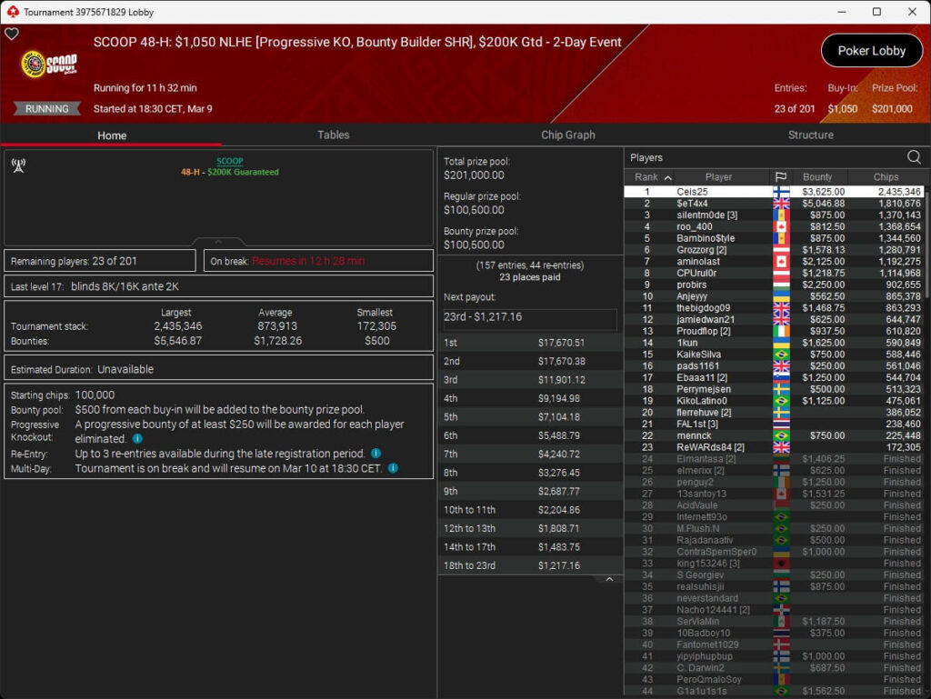 Ebenfalls knapp an einem SCOOP-Titel vorbeigeschrammt ist aufzuckerter, der sich im $1.050 PLO8 6-Max nur Patrick „pads1161“ Leonard ($20.551,12) geschlagen geben musste. Als Runner-Up kassierte aufzuckerter $15.778,21 Preisgeld.