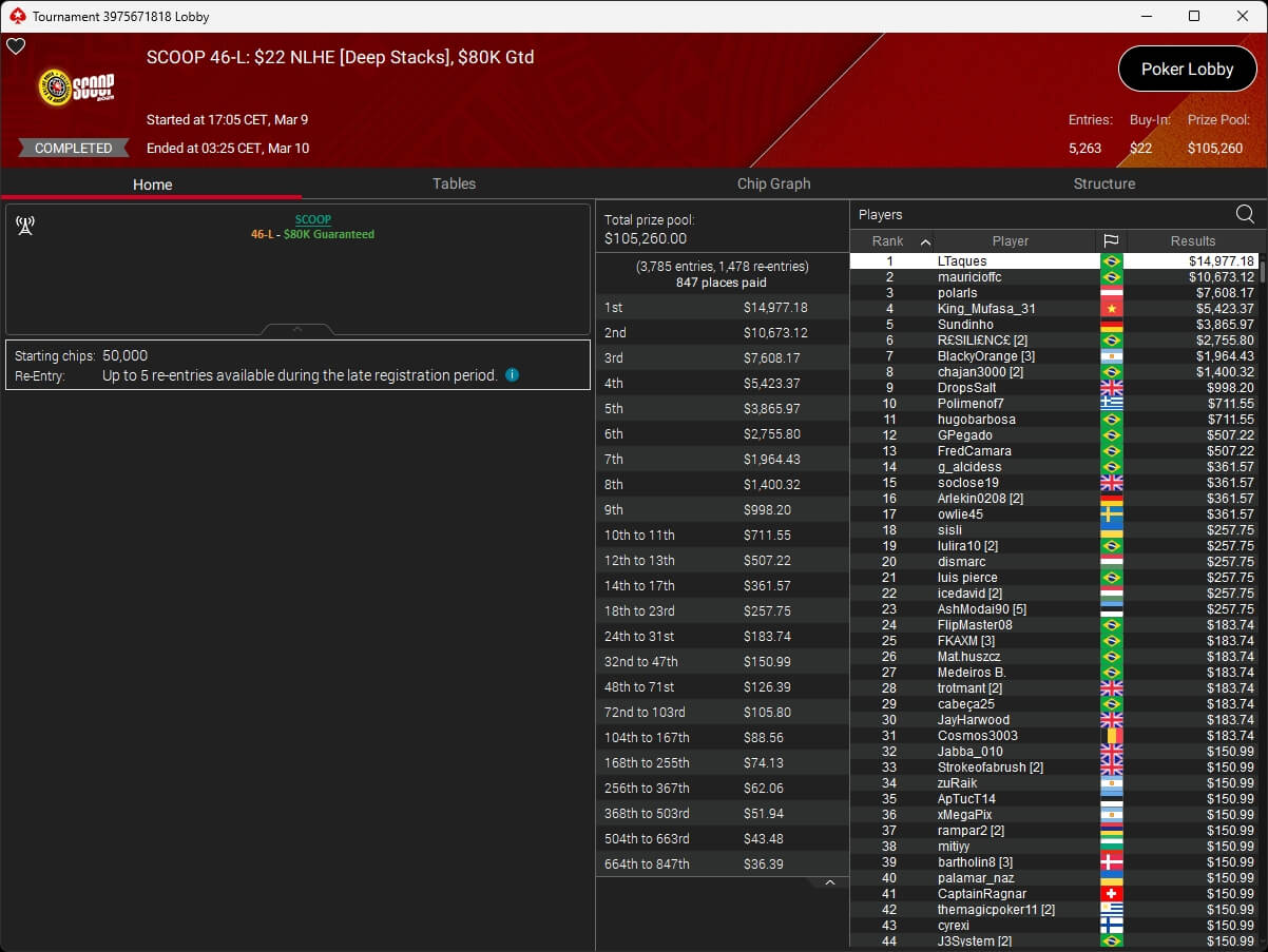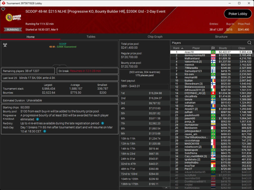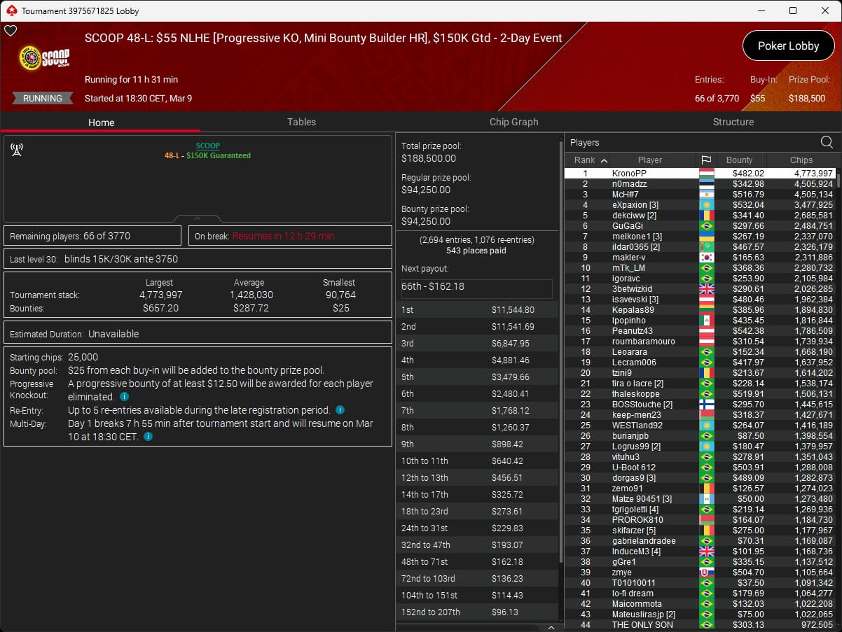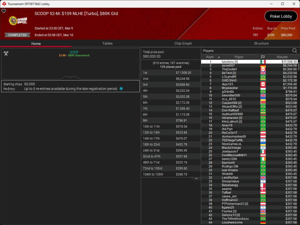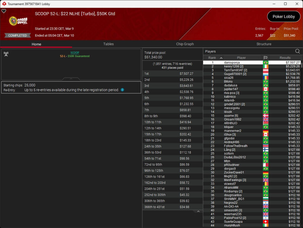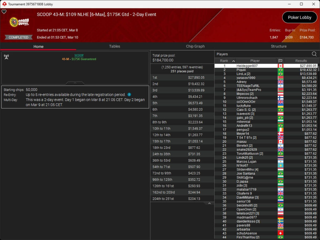 Ebenfalls knapp an einem SCOOP-Titel vorbeigeschrammt ist aufzuckerter, der sich im $1.050 PLO8 6-Max nur Patrick „pads1161“ Leonard ($20.551,12) geschlagen geben musste. Als Runner-Up kassierte aufzuckerter $15.778,21 Preisgeld.