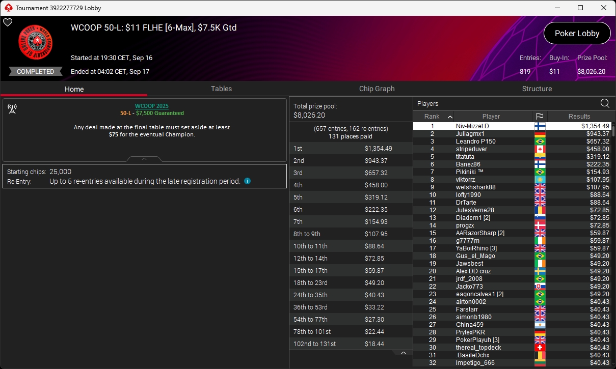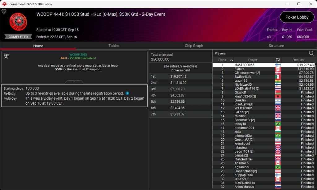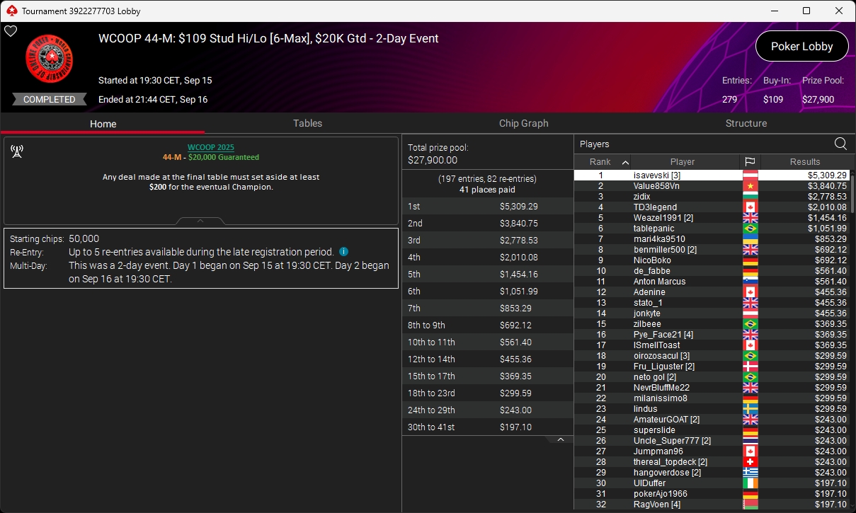 Ilija „isavevski“ Savevski hat bei der PokerStars World Championship of Online Poker 2025 einen Turniersieg geholt.