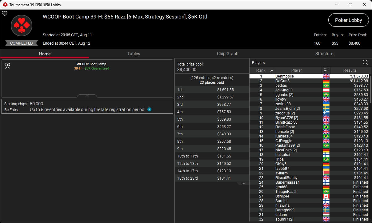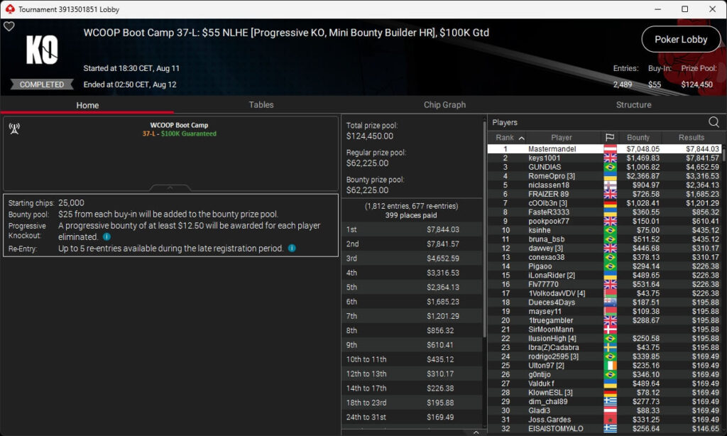 Mastermandel und Mrpecoo haben beim PokerStars WCOOP Boot Camp Siege eingespielt.