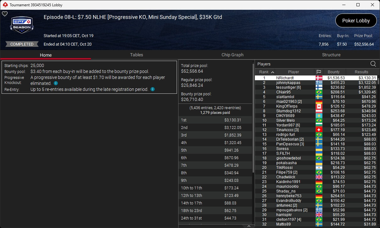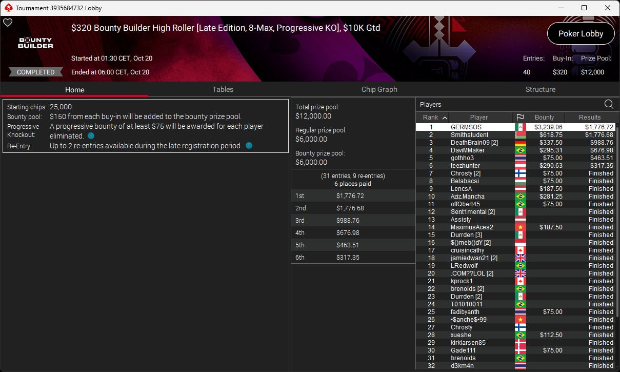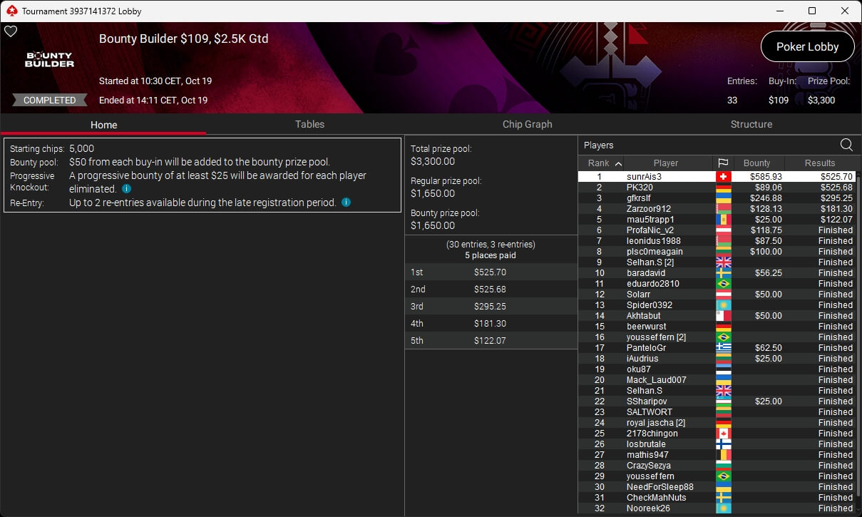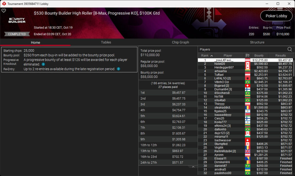 Poker-Pro Pascal „Pass_72“ Lefrançois hat das PokerStars Titans Event gewonnen. Sxmon aus Österreich wurde Runner-up. Paul Höfer setzte sich im Bounty Builder HR durch.