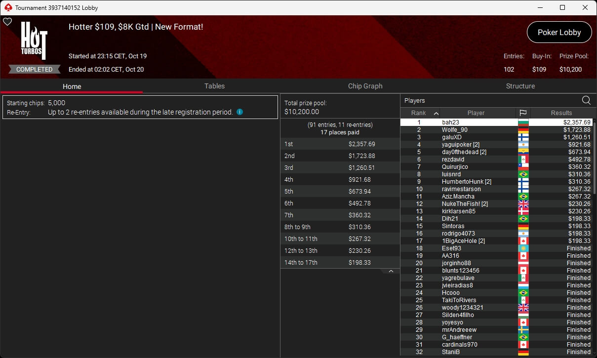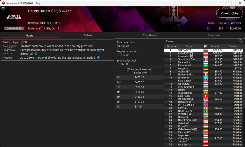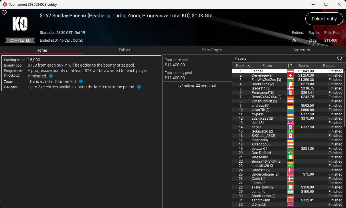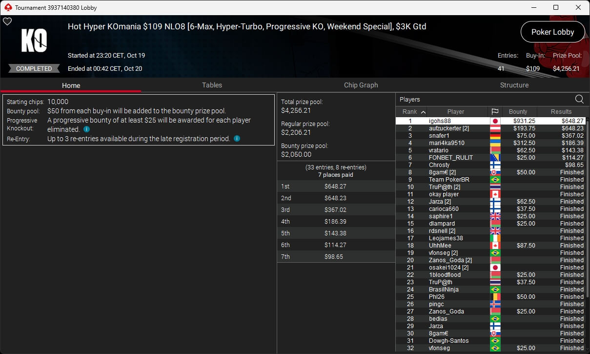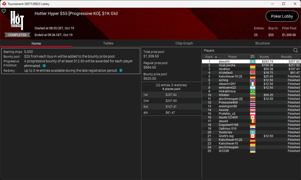 Poker-Pro Pascal „Pass_72“ Lefrançois hat das PokerStars Titans Event gewonnen. Sxmon aus Österreich wurde Runner-up. Paul Höfer setzte sich im Bounty Builder HR durch.