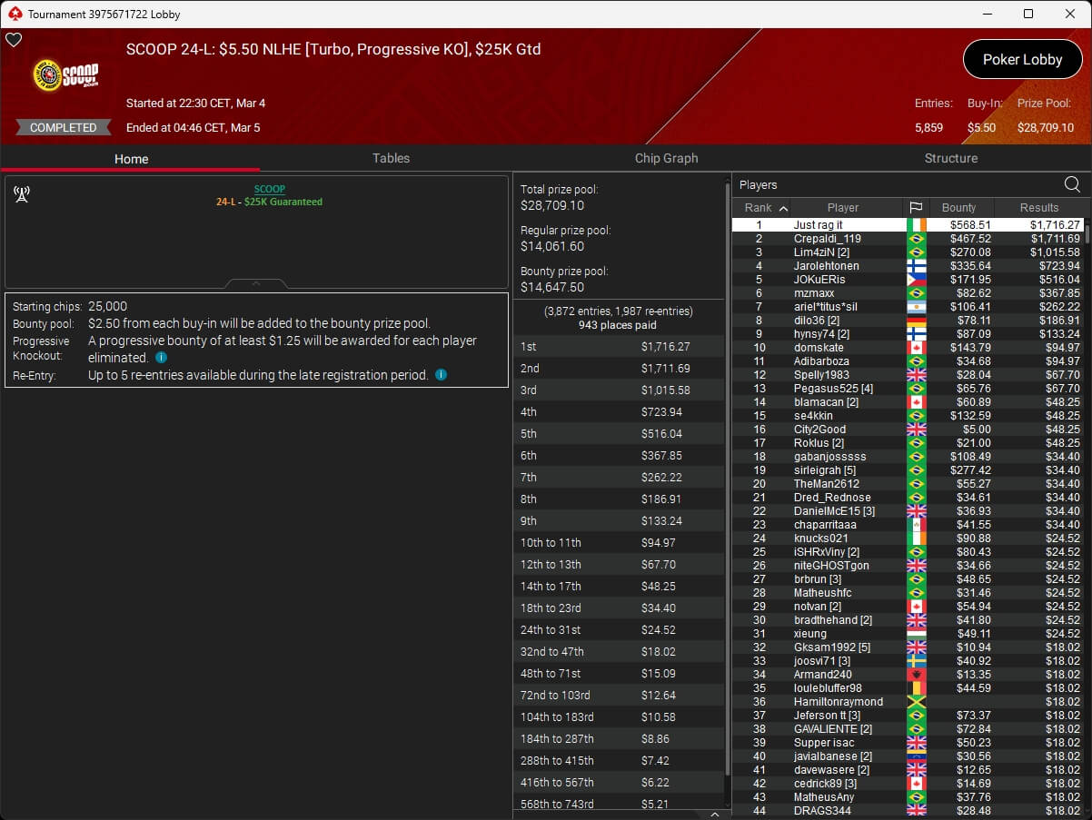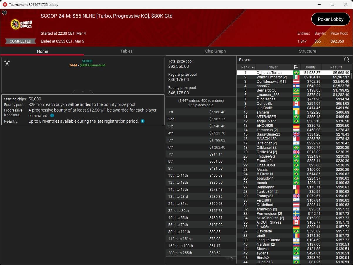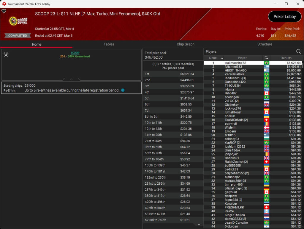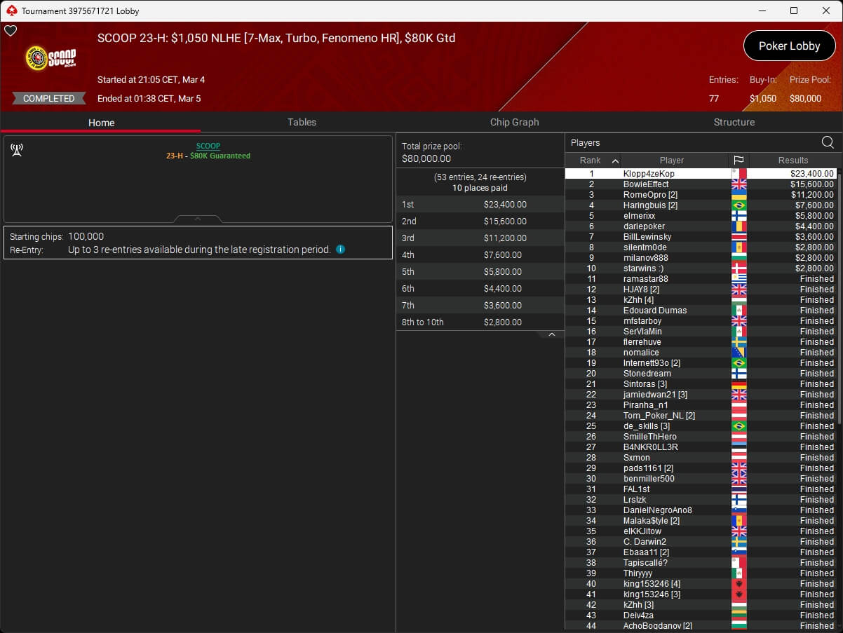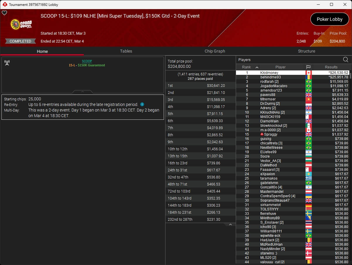 Iago „stek94“ Botelho hat das $5k Super Tuesday Event der PokerStars Spring Championship of Online Poker 2026 gewonnen. Sintoras spielte ebenfalls einen Titel ein.