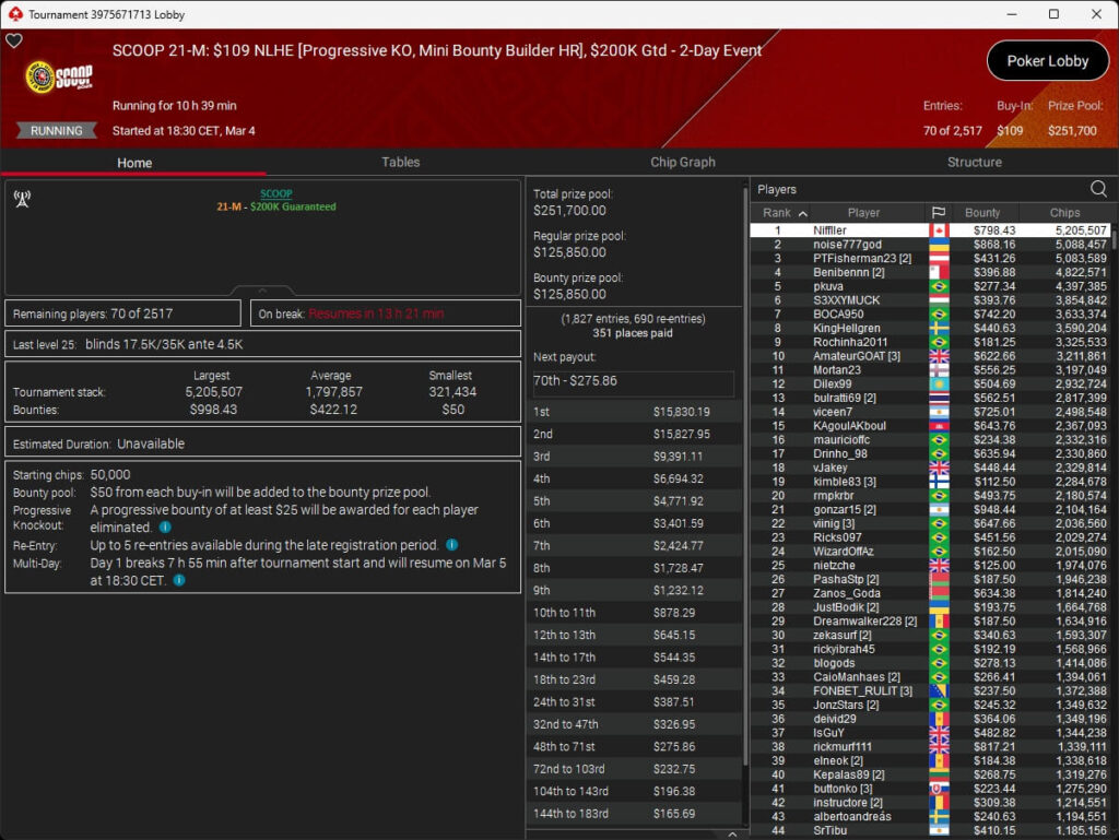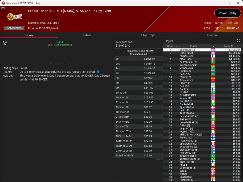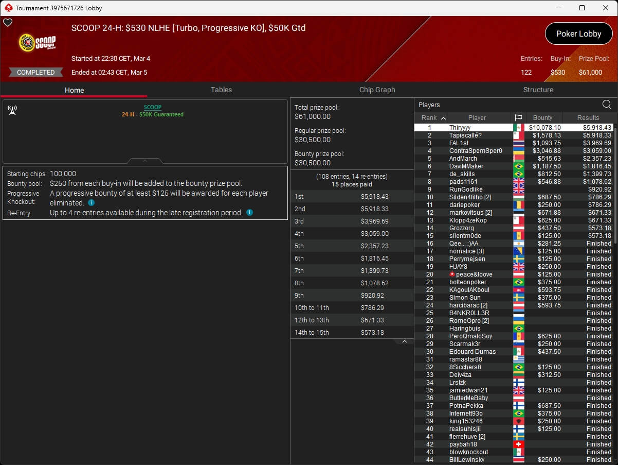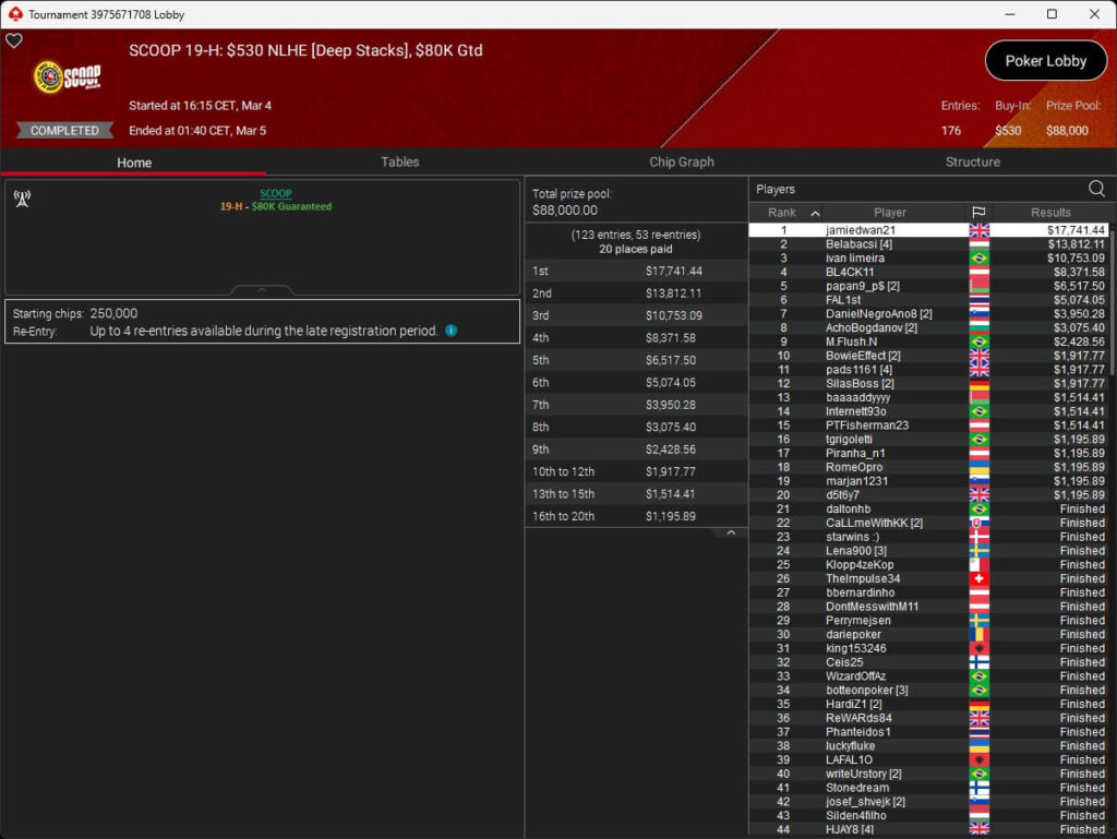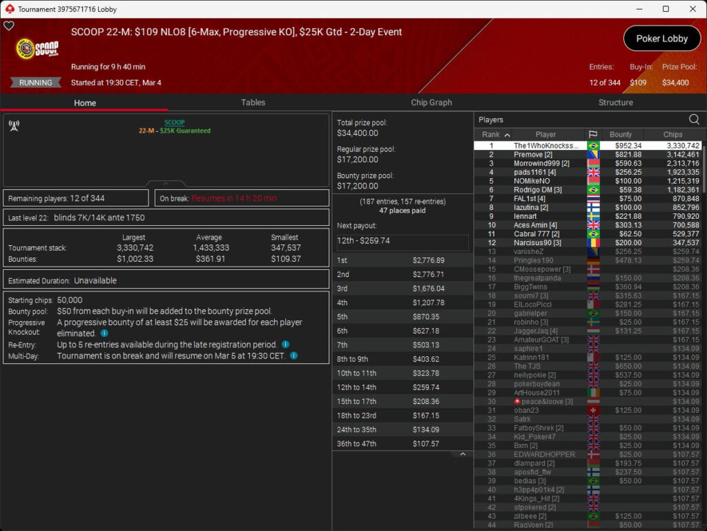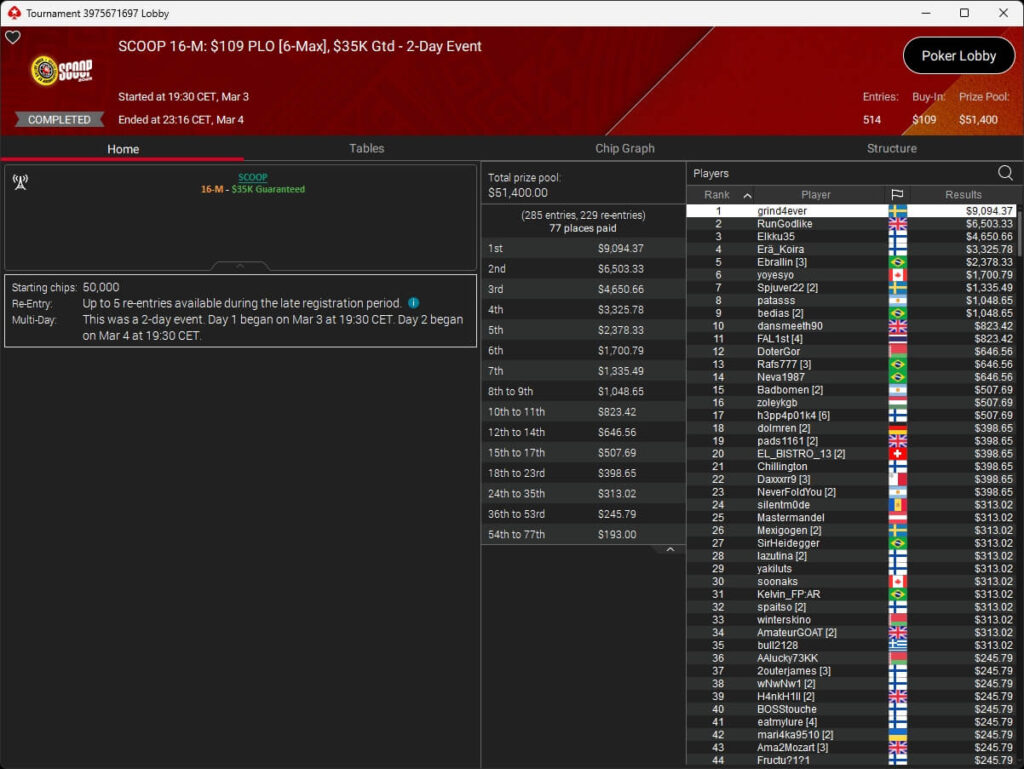 Der vierte Tag der SCOOP 2026 auf PokerStars brachte das Finale im $5.200 Super Tuesday High Roller. Pavel „silentm0de“ Plesuv war der Bubble Boy, die $235.000 an Preisgeldern verteilten sich auf sechs Plätze.