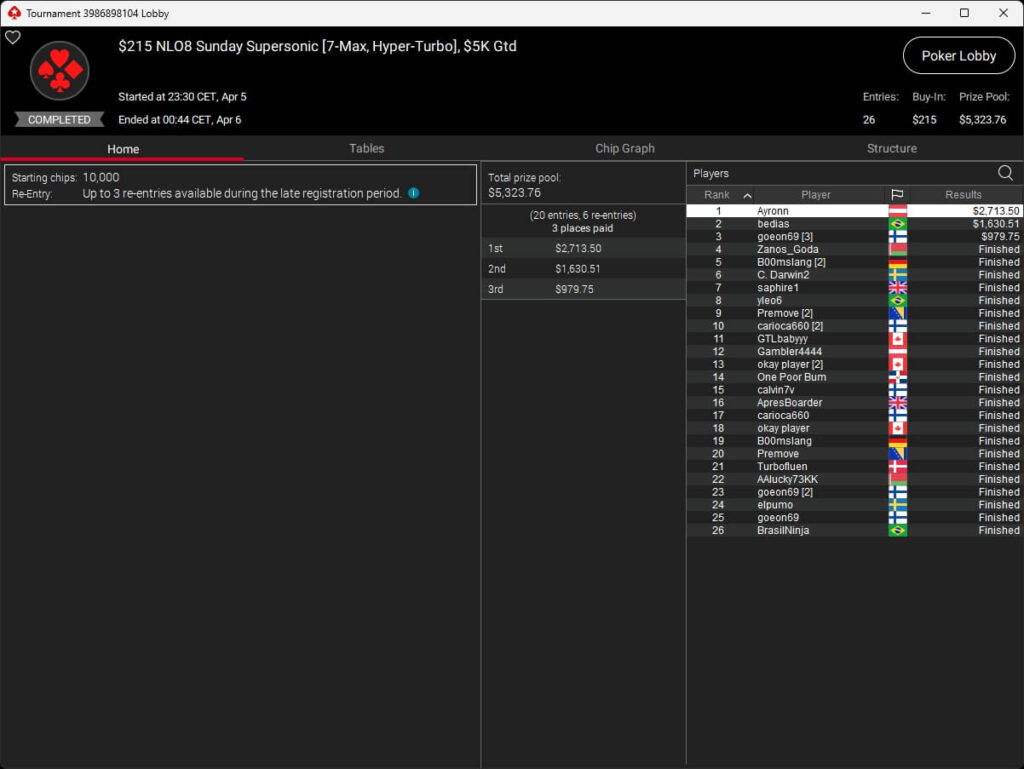 Sintoras und Ayronn sicherten sich beim Turniersonntag auf PokerStars Titel.