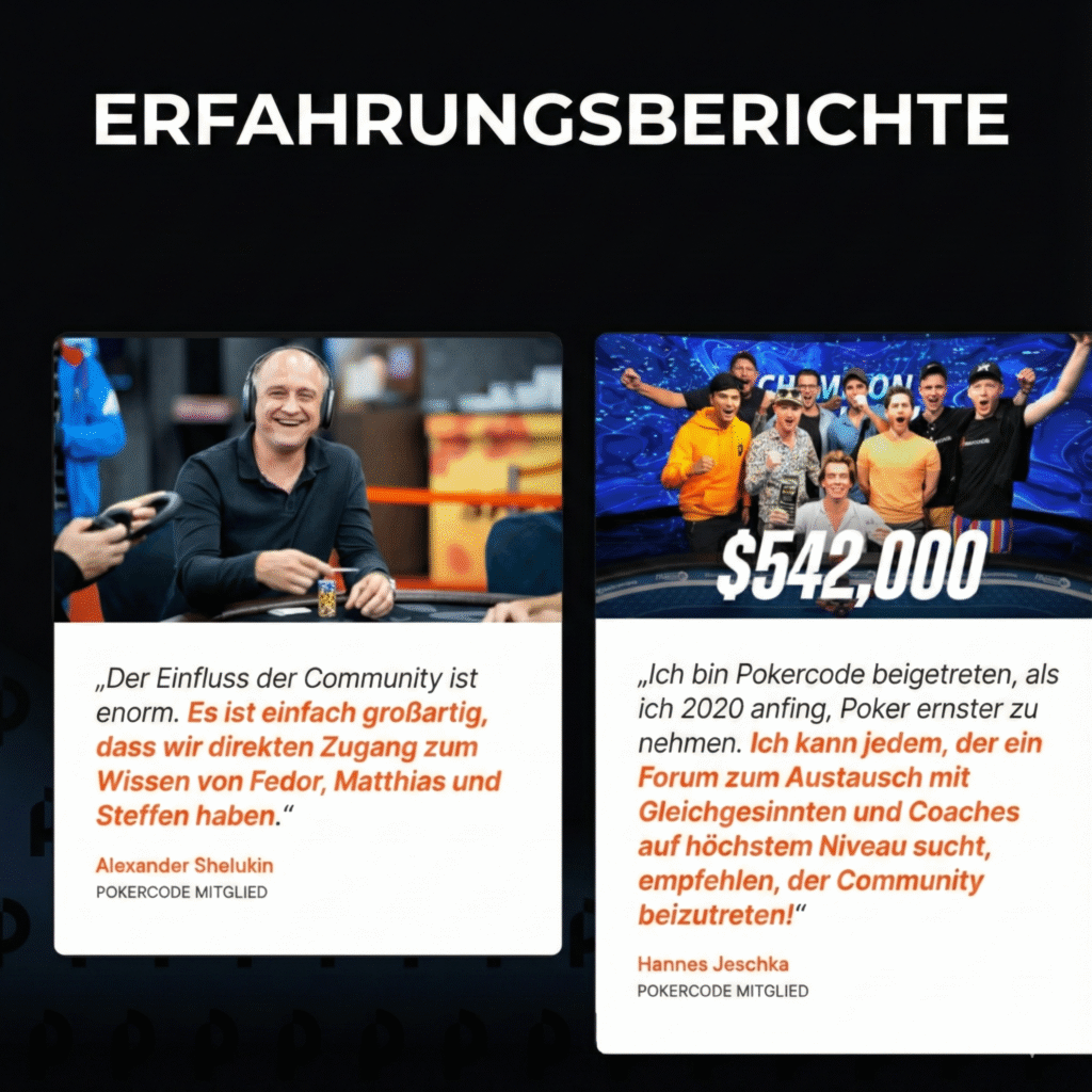 Was einst als einmaliges Video-Coaching Programm von Fedor Holz und Matthias Eibinger geplant war, hat sich mittlerweile zur einer riesigen Community mit laufend neuen Inhalten und vielen Coachings durch die besten Spieler der Welt entwickelt. Unzählige Stunden wurden in das Lernmaterial investiert, die Grindhäuser haben für weltweites Aufsehen gesorgt. Nach einigen Festivals, Community Reisen und Bootcamps hat sich einen richtig große und lebendige Poker Community entwickelt, auch viele Freundschaften und WGs sind daraus auch schon entstanden. Man könnte fast sagen – das neue PokerStrategy. Was zu Beginn des Pokerbooms vor 20 Jahren Pokerstrategy war, ist heute längst durch Pokercode abgelöst und überholt worden.