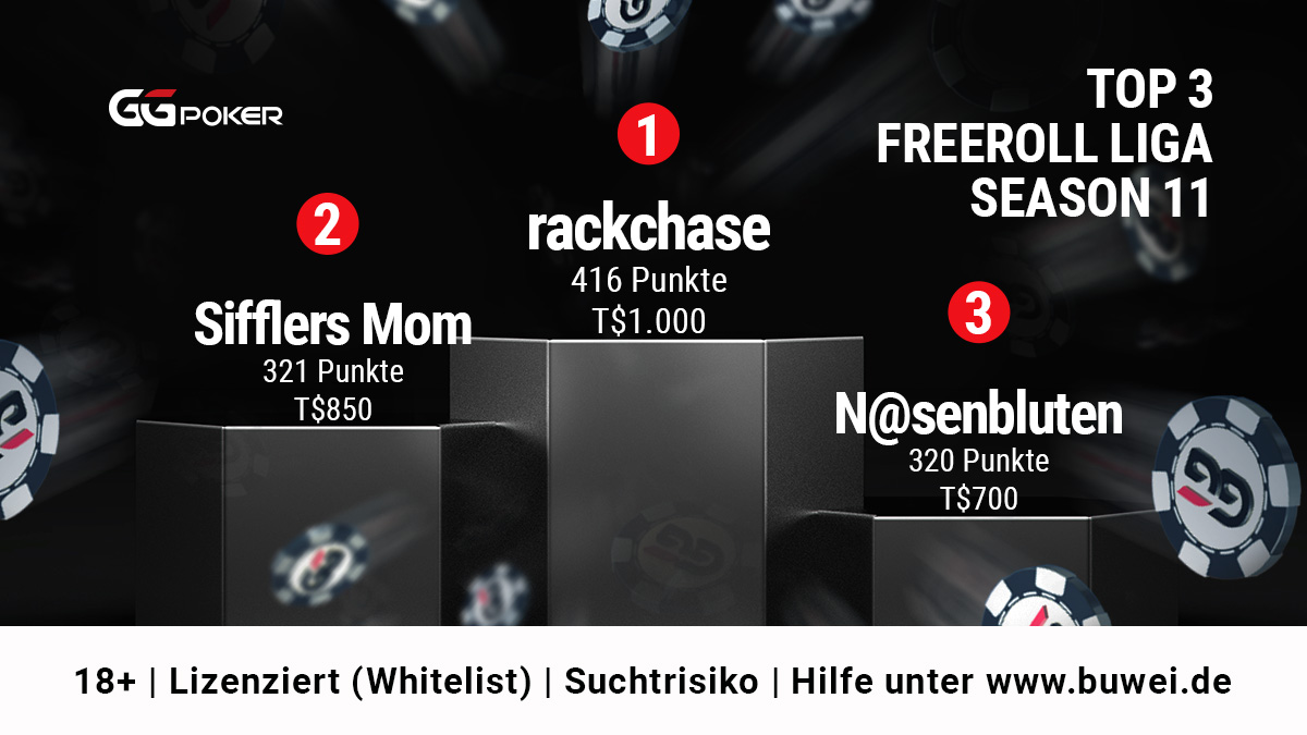 Die 11. Saison der GGPoker.de Freeroll-Liga war die bislang erfolgreichste. Mit durchschnittlich 1.811 Teilnehmern pro Turnier erreichte die Liga einen neuen Höchstwert.