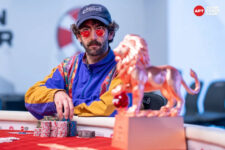 Ein abstraktes blau-weißes Logo mit geometrischen Formen und Linien.