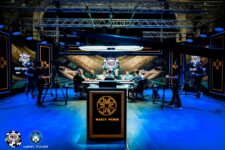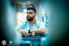 Ein abstraktes blau-weißes Logo mit geometrischen Formen und Linien.