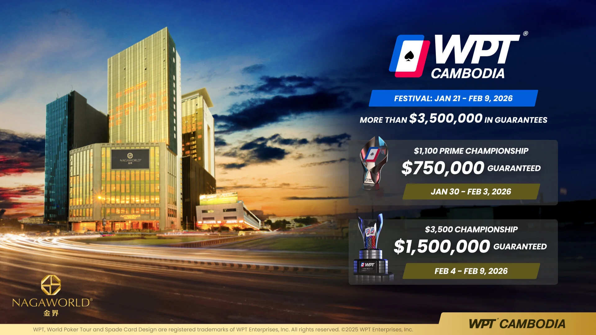 Vom 21. Januar bis 9. Februar 2026 lockt die World Poker Tour Cambodia ins NagaWorld Integrated Resort. Highlight ist die WPT Cambodia Championship.