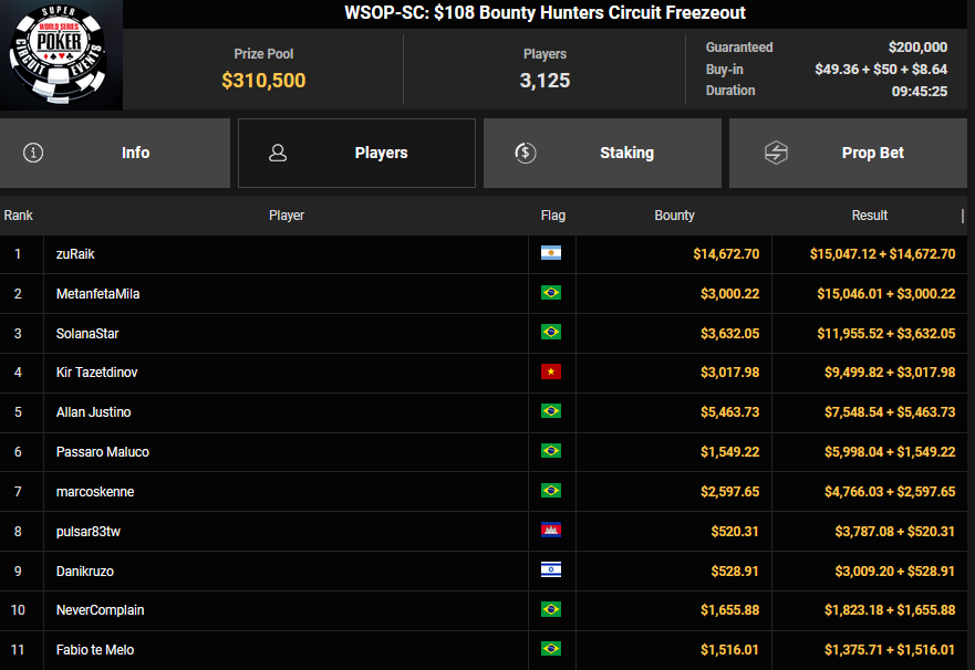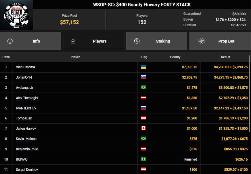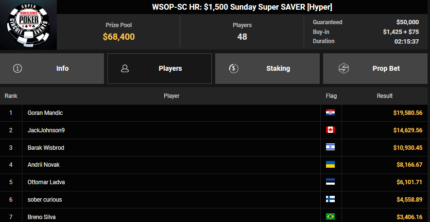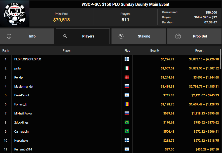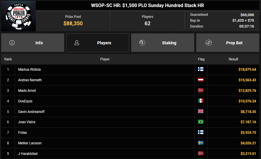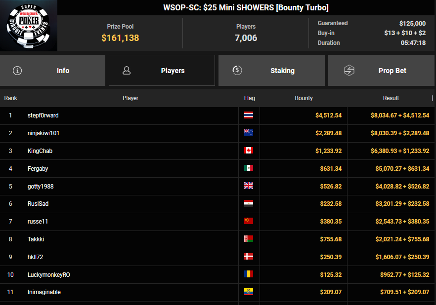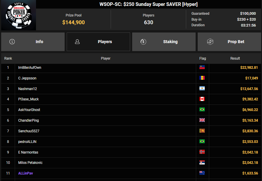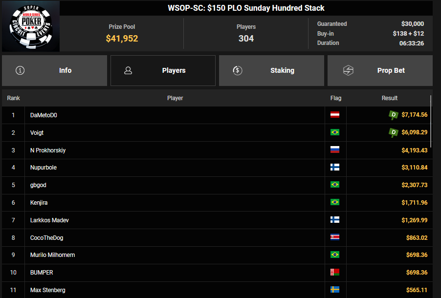 Nino Ullmann kam beim $840 Bounty Warm-up HR auf Rang 3 für $5.628+ $1.287 und kassierte beim $1.500 Sunday Super Classic HR für Rang 4 noch $33.115. Christian Rudolph kam hier auf Rang 3 für $42.944.
