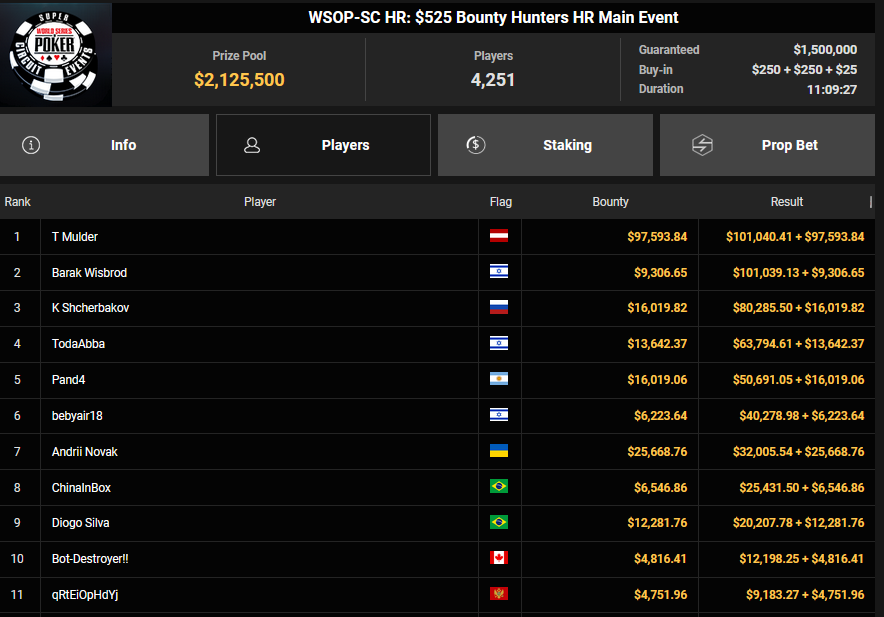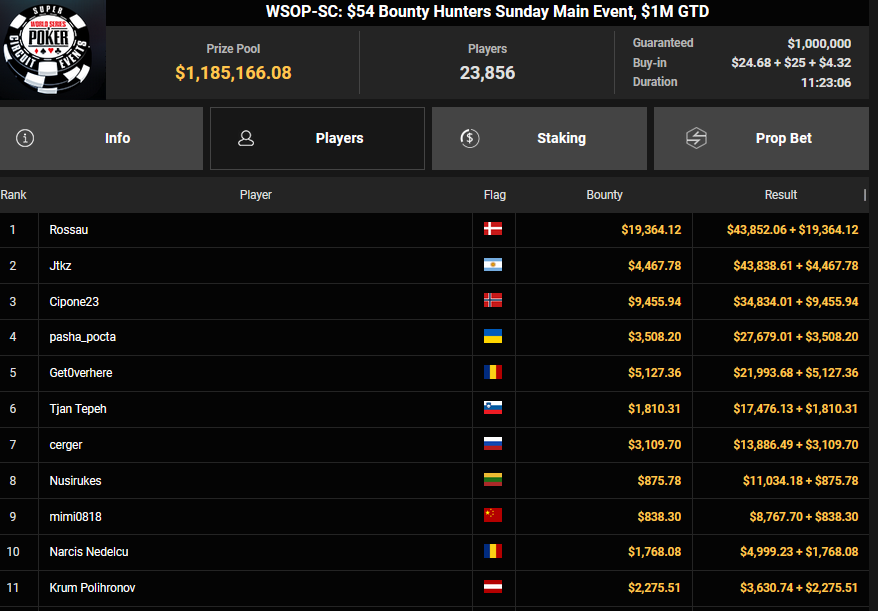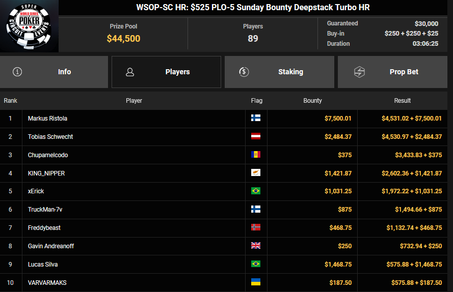 Tobias Schwecht wurde beim $525PLO-5 Bounty Deepstack Runner-up für $4.530 + $2.484, Im88erAufOwn holte das $250 Sunday Super Saver für $22.982.