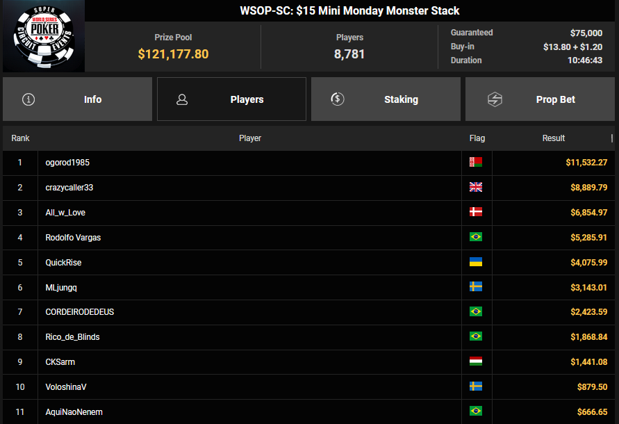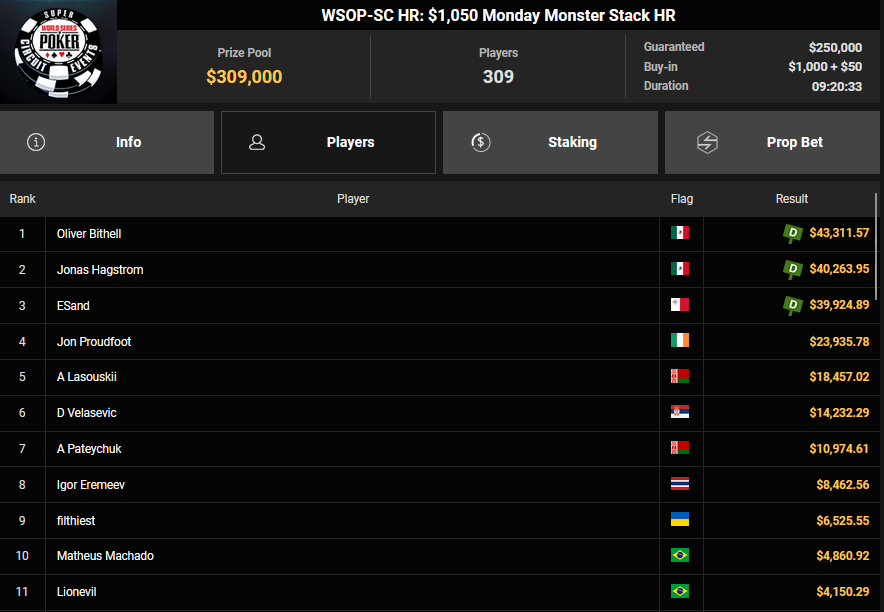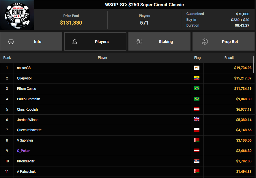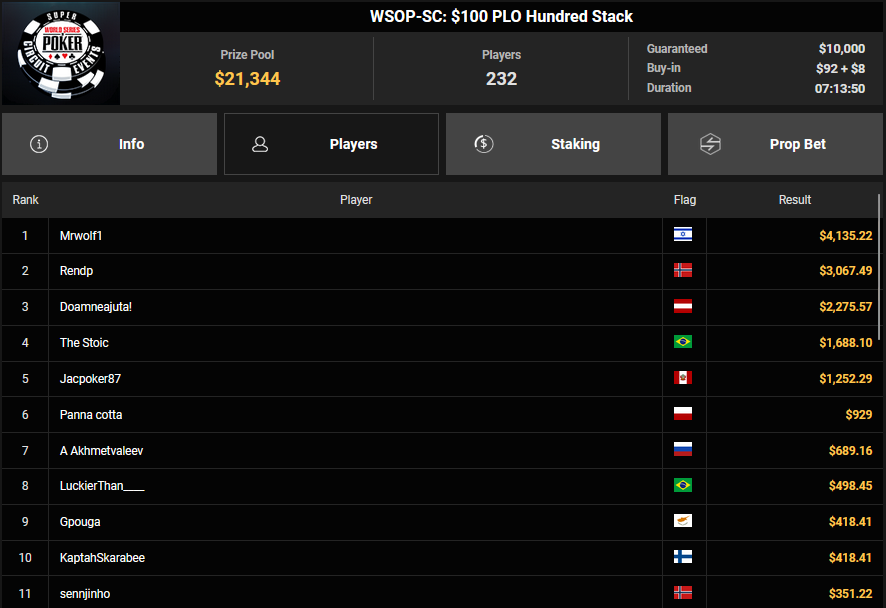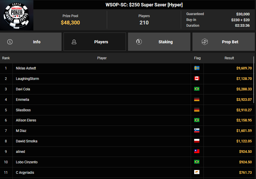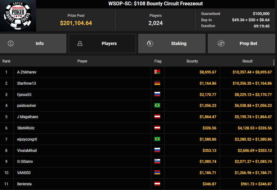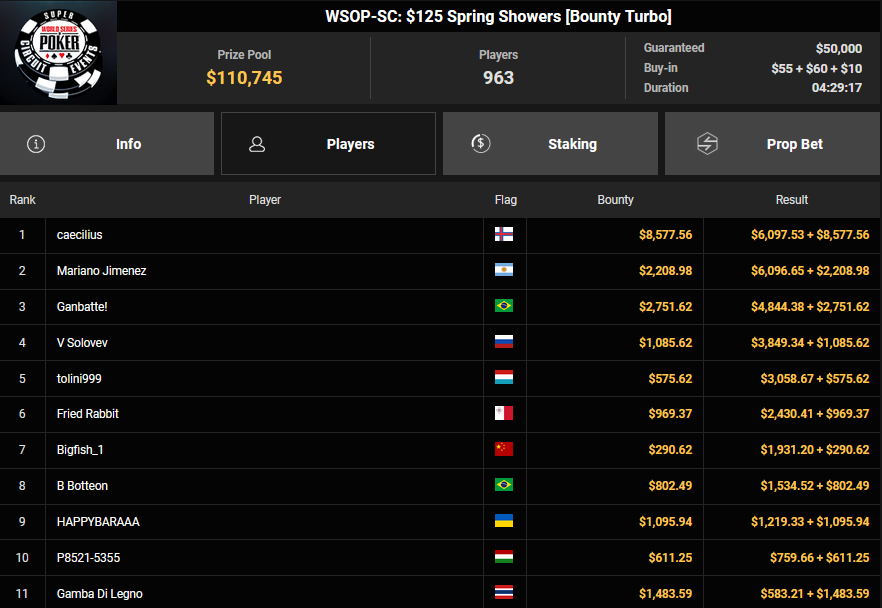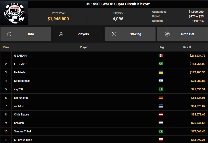 Der erste Ring beim WSOP Super Circuit Online auf GGPoker ist vergeben und er ging an Gabriel Bardini. Für die deutschsprachigen Spieler gab es dafür dicke Schecks bei den Side Events.