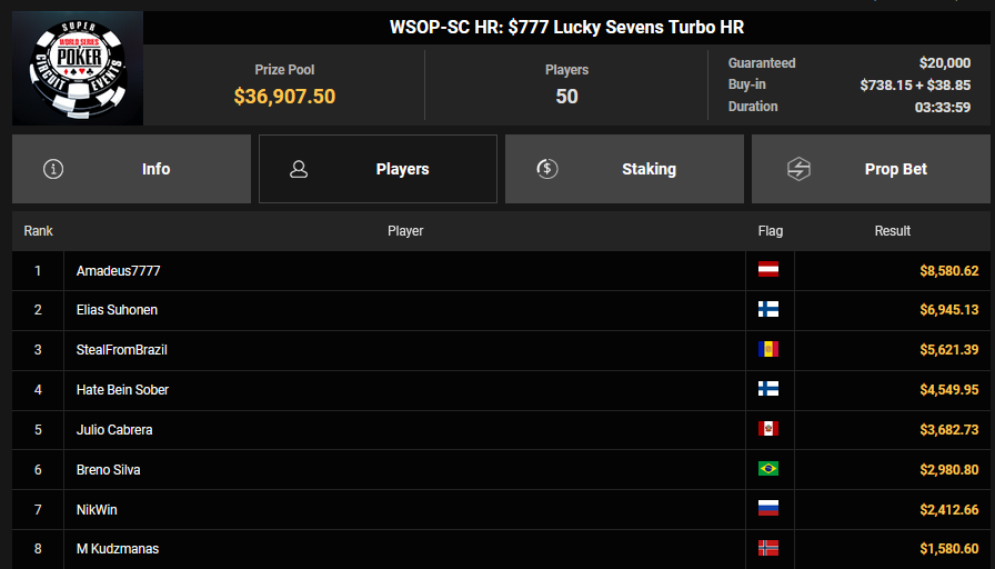 Amadeus7777 rettete die Ehre der DACHs und holte das $777 Lucky Sevens Turbo für $8.500.