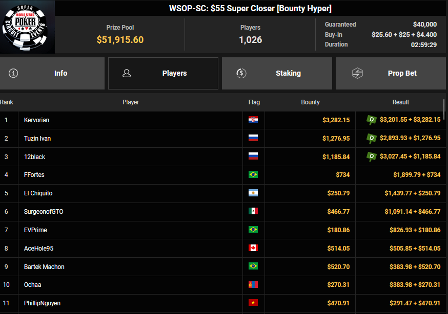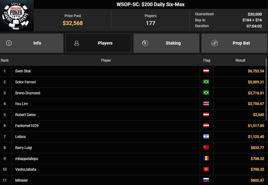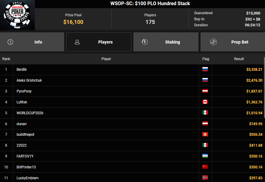 Neuerlich gab es keinen Ring für die DACHs beim $1.0050 Mystery Bounty PLO beim WSOP Super Circuit Online auf GGPoker, auch bei den Side Events waren die Erfolge dieses Mal nicht so zahlreich.