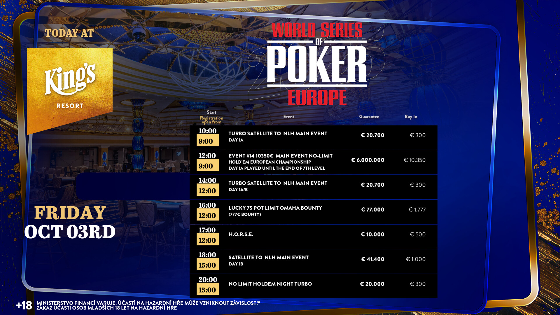 Preispool: € 1.000.000 GTD (inkl. 10 x € 10.350 WSOPE Main Event Tickets)