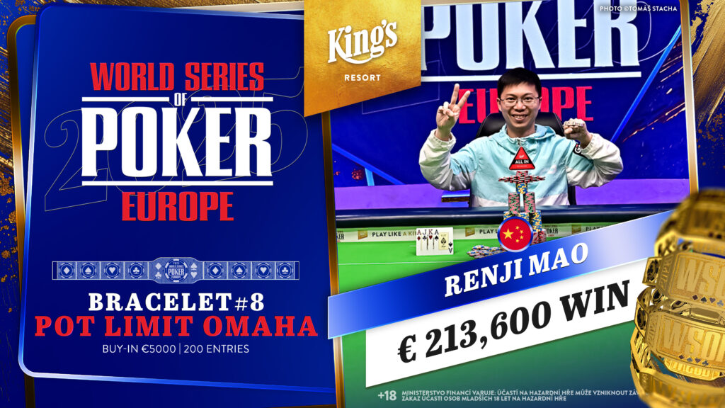 Es war ein hochkarätiges Finale beim € 5.000 Pot Limit Omaha Event # 8 der World Series of Poker (WSOP) Europe 2025 im King’s Resort Rozvadov, am Ende jubelte Renji Mao über das Bracelet und € 213.600 Preisgeld.