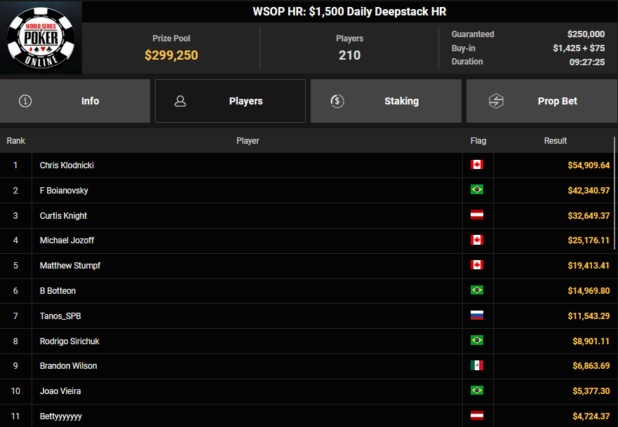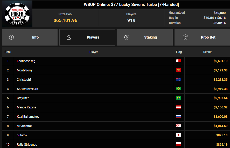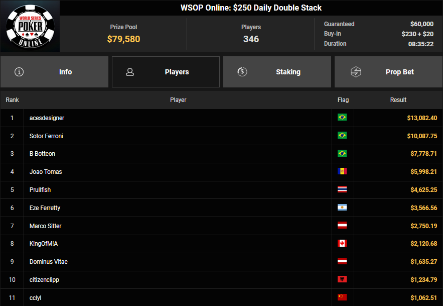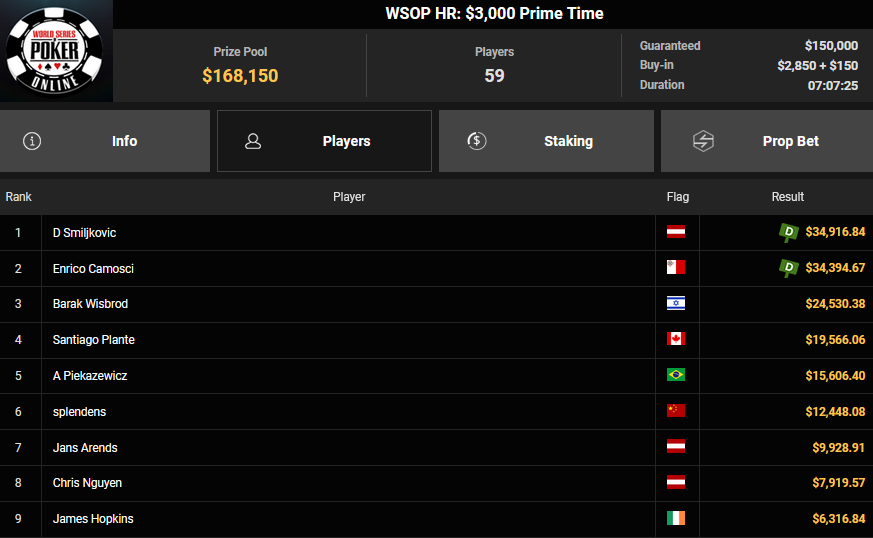 Auch Dario Sammartino oder Adrian Mateos waren unter denjenigen, die das Finale knapp verpassen sollten. Matheus Cardoso Machado führt das Finale vor Rodrigo Selouan an, Eelis Parssinen ist der bekannteste Spieler am Tisch. Die letzten neun haben $251.634 sicher, der Sieger kassiert $2.003.850 + $30k WSOPP Super Pass. Die Entscheidung gibt es heute auch live auf ggpoker.tv mit Daniel Negreanu als Kommentator.