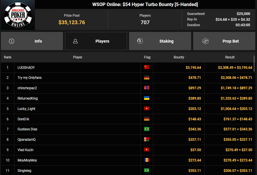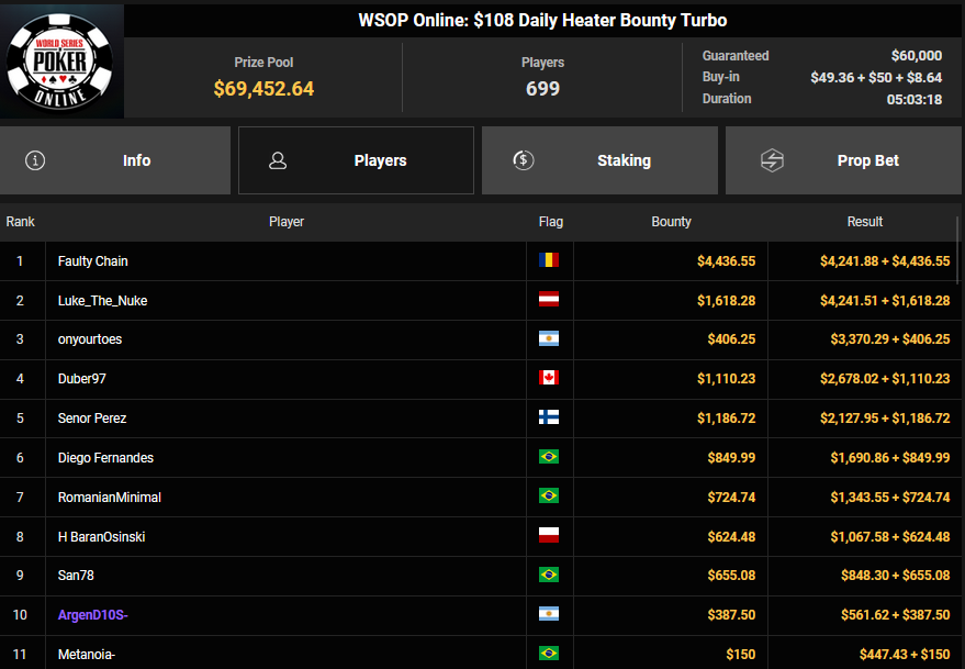 Leonard Maue wurde Dritter beim $10.300 Monday SHR ($78.302), Luke_The_Nuke wurde Runner-up beim $108 Daily Heater Bounty und kassierte $4.2411 + $1.618. Be Consistent siegte beim $55 Day Saver ($6.511), VotedStraw wurde Runner-up ($4.829). Try my Onlyfans verpasste den Sieg beim 454 Hyper Turbo Bounty ($2.308 + $478).