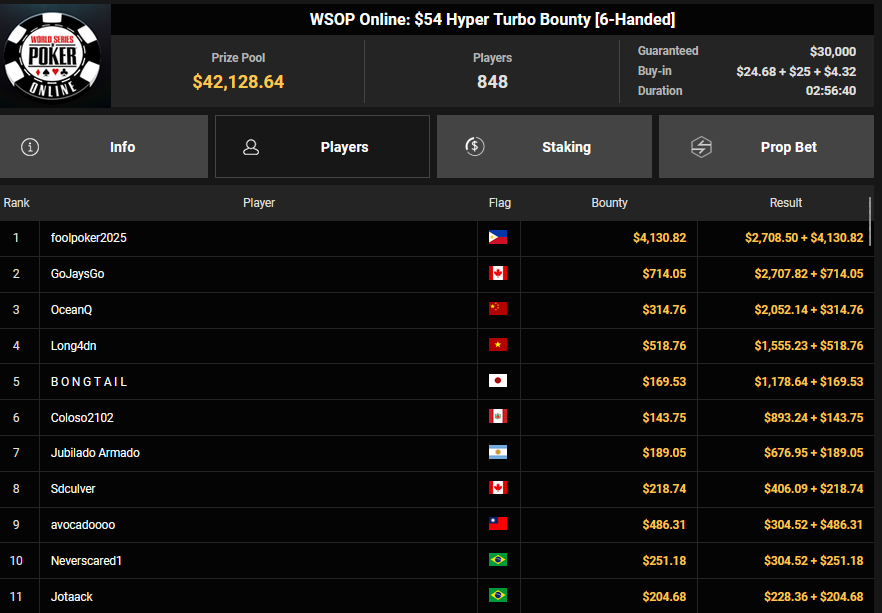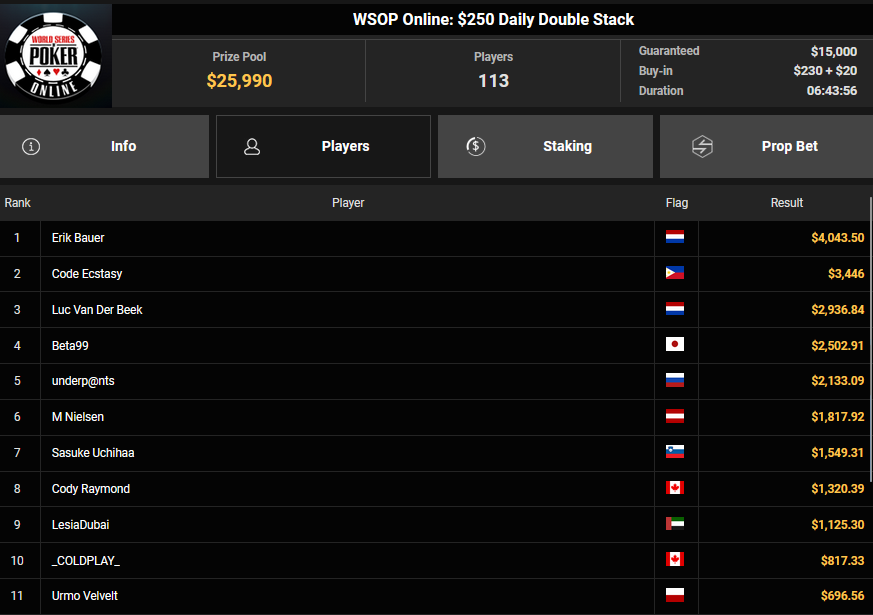 Der Freitag bei der World Series of Poker (WSOP) Online 2025 auf GGPoker war sehr ruhig und auch die DACHs gaben sich zurückhaltend.