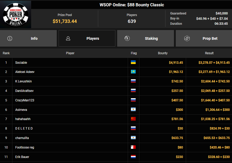 Marco Sitter wurde beim $108 Bounty Blas Runner-up für $2.565 + $2.910, auch Kurt Godel wurde Zweiter für $3.774 beim $125 Daily Marathon. Try my Onlyfans belegte Rang 3 beim $250 Daily Main Event für $4.600, während Markus Prinz den Sieg beim $215 Bounty Hunters für $2.543 + $3.219 verpasste. hazuzukaa kam auf Rang 3 für $11.556 beim $1.500 Daily Deepstack, ebenso belegte fliyng Rang 3 beim $77 Lucky Sevens ($3.455). Zerschlagen kassierte für Rang 2 beim $108 Daily Heater $2.274 + $603.