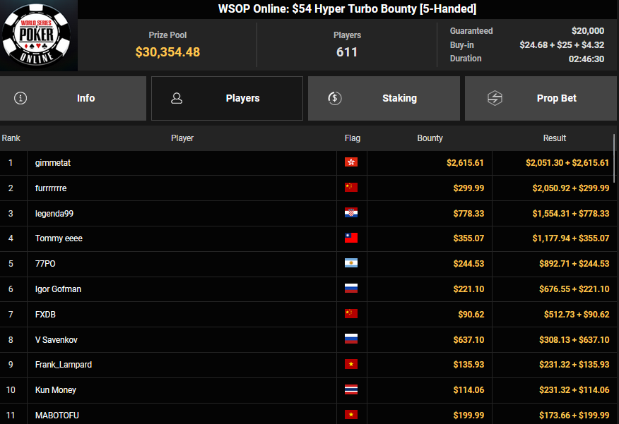 Heute dreht sich eben alles um die WSOP Main Events, beim $5k WSOP Online Main Event werden auch zahlreiche Satellites angeboten. Turniere & Satellites sind im Client im „WSOP“ Tab zu finden, alle Infos zu den Events gibt es auch auf den Seiten von GGPoker.