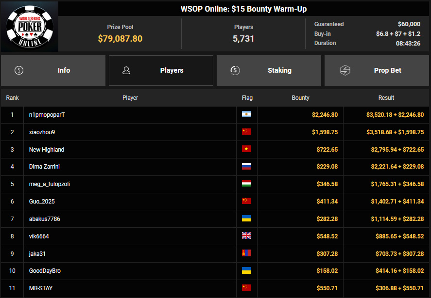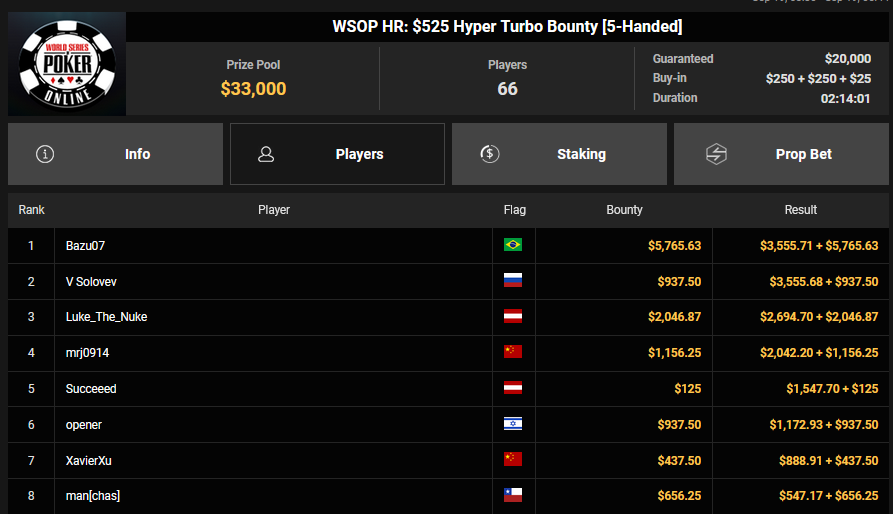 Auch beim $525 Superstack Turbo Bounty NLH (#18) der World Series of Poker (WSOP) Online 2025 auf GGPoker blieb es bei „fast“ mit dem DACH-Gracelet. Bei den Siede Events gab es wieder einiges geworden. Dafür konnte Christopher Pütz beim $5k Main Event einen guten Start hinlegen.